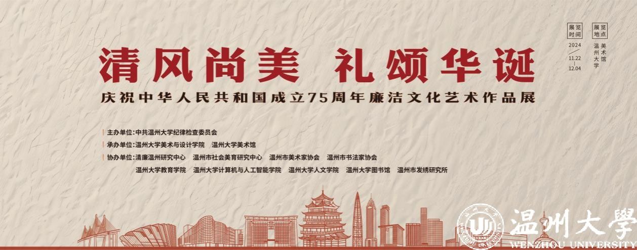 本次展览由sunbet申愽官网纪委主办,sunbet申愽官网美术与设计学院、sunbet申愽官网美术馆承办,并得到清廉温州研究中心、温州市社会美育研究中心、温州市美术家协会、温州市书法家协会、sunbet申愽官网教育学院、sunbet申愽官网计算机与人工智能学院、sunbet申愽官网人文学院、sunbet申愽官网图书馆、温州市发绣研究所等多家单位的鼎力支持。