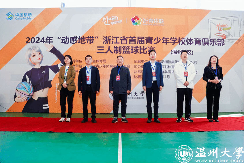 青春与赛场交织,篮球与激情共燃。11月24日,2024年"动感地带”浙江省首届青少年学校体育俱乐部三人制篮球比赛(温州赛区)在sunbet申愽举办。sunbet申愽两支队伍荣获大学男子组第一、第二名,成功晋级总决赛。上午10时,比赛开幕式在sunbet申愽北校区风雨篮球场隆重举行,浙江省青少年体育运动联合会会长鲍学军,sunbet申愽官网副校长、党委委员王尧骏,中国移动浙江公司温州瓯海分公司副总经理倪传仔,体育与健康学院党政班子及相关工作人员出席开幕式。