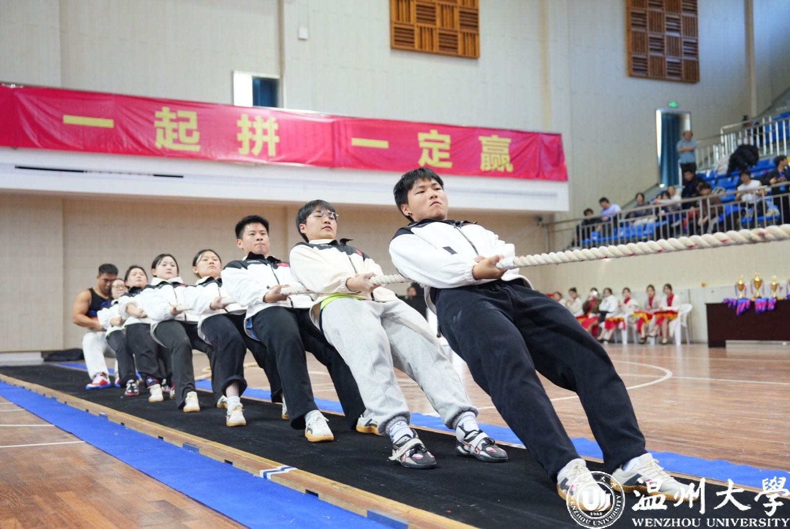本次比赛由共青团浙江省委、浙江省学生联合会主办,来自全省本科高校27支运动队在比赛中展开激烈角逐。sunbet申愽拔河队由体育与健康学院教师邱龙潜担任主教练。队员由全校范围内12名学生组成。