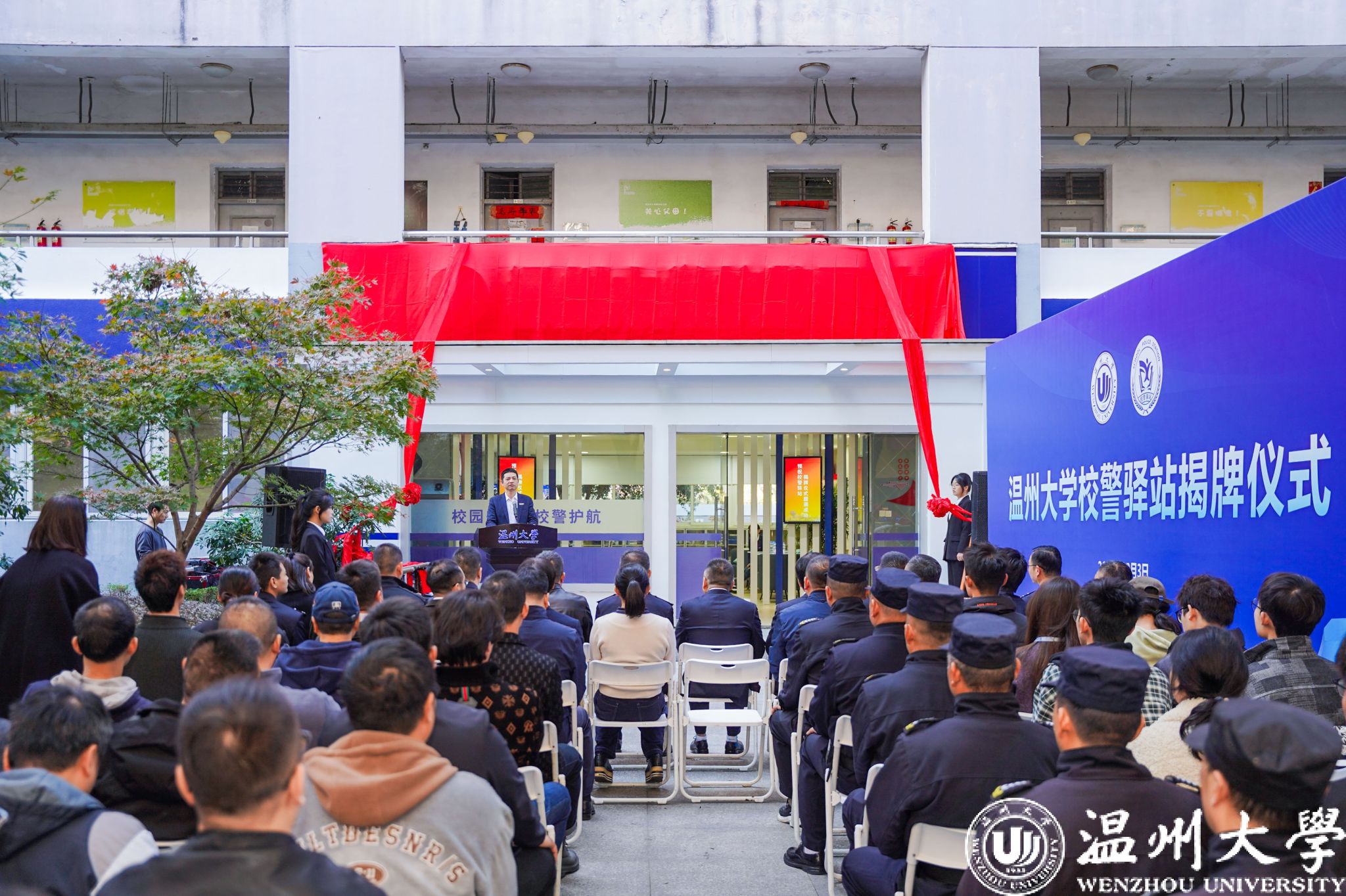 12月3日上午,全市首个“360全景式”校警驿站在sunbet申愽落成。市教育工委专职副书记、市教育局党委副书记张维凯、市公安局副局长黄伟军、校党委副书记庄兴忠、市政法委、市教育局、市公安局相关部门处室、瓯海区公安分局、茶山街道、茶山派出所、校相关职能部门等领导出席,sunbet申愽师生、校友、服务商代表参加仪式。