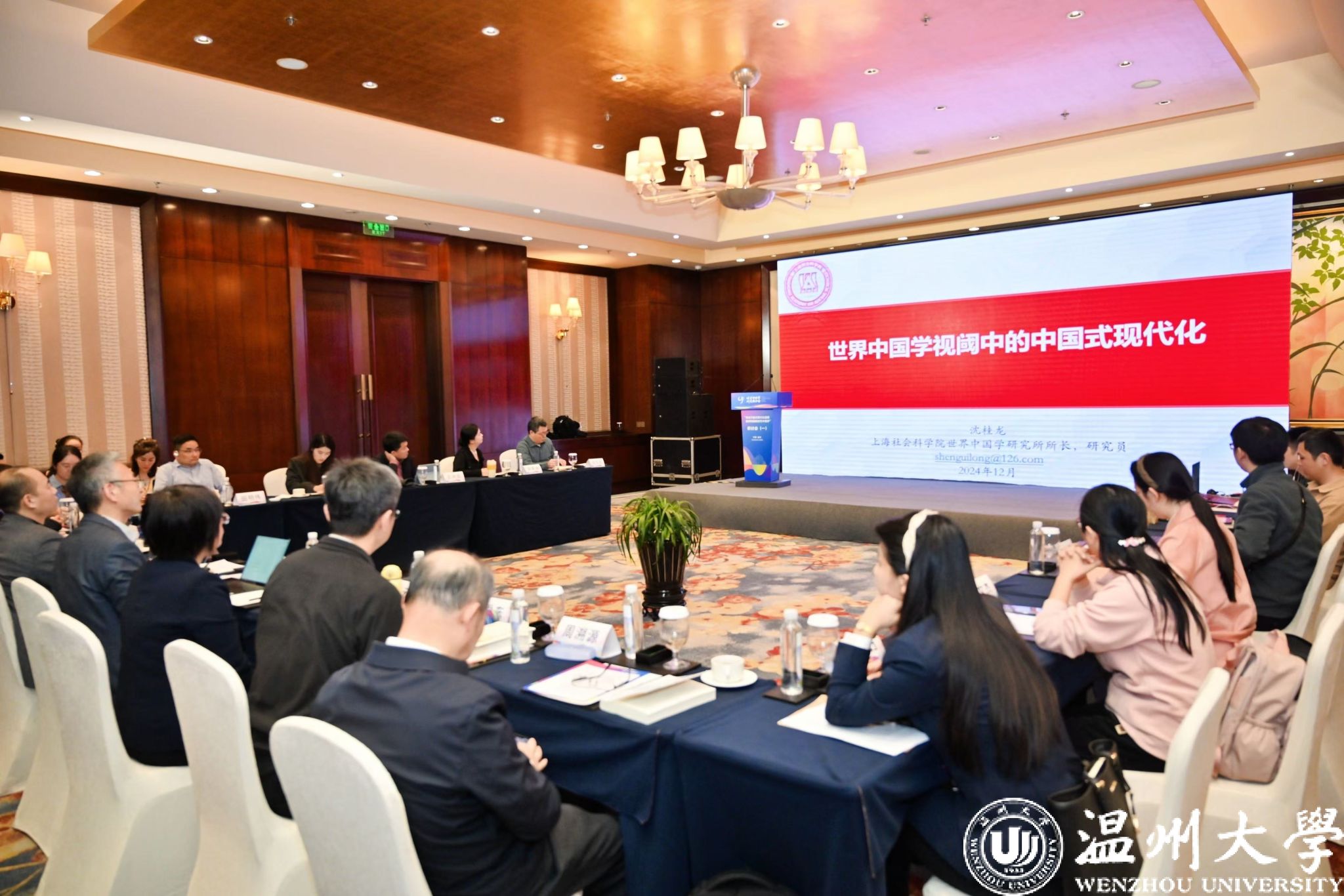 12月4日,由世界中国学研究联合会、中国社会科学院文化发展促进中心主办,温州市温州学研究联合会、sunbet申愽官网、温州理工学院联合承办的“讲述中国式现代化道路 加快构建新时代中国学”研讨会在温州举行。世界中国学研究联合会副理事长、秘书长崔建民,市人大常委会主任、温州学研究联合会理事长葛益平出席开幕式并讲话,中国社会科学院学部委员朝戈金,sunbet申愽党委书记钱强、副校长刘玉侠等领导以及来自全国各地的近百名专家学者参加研讨会。