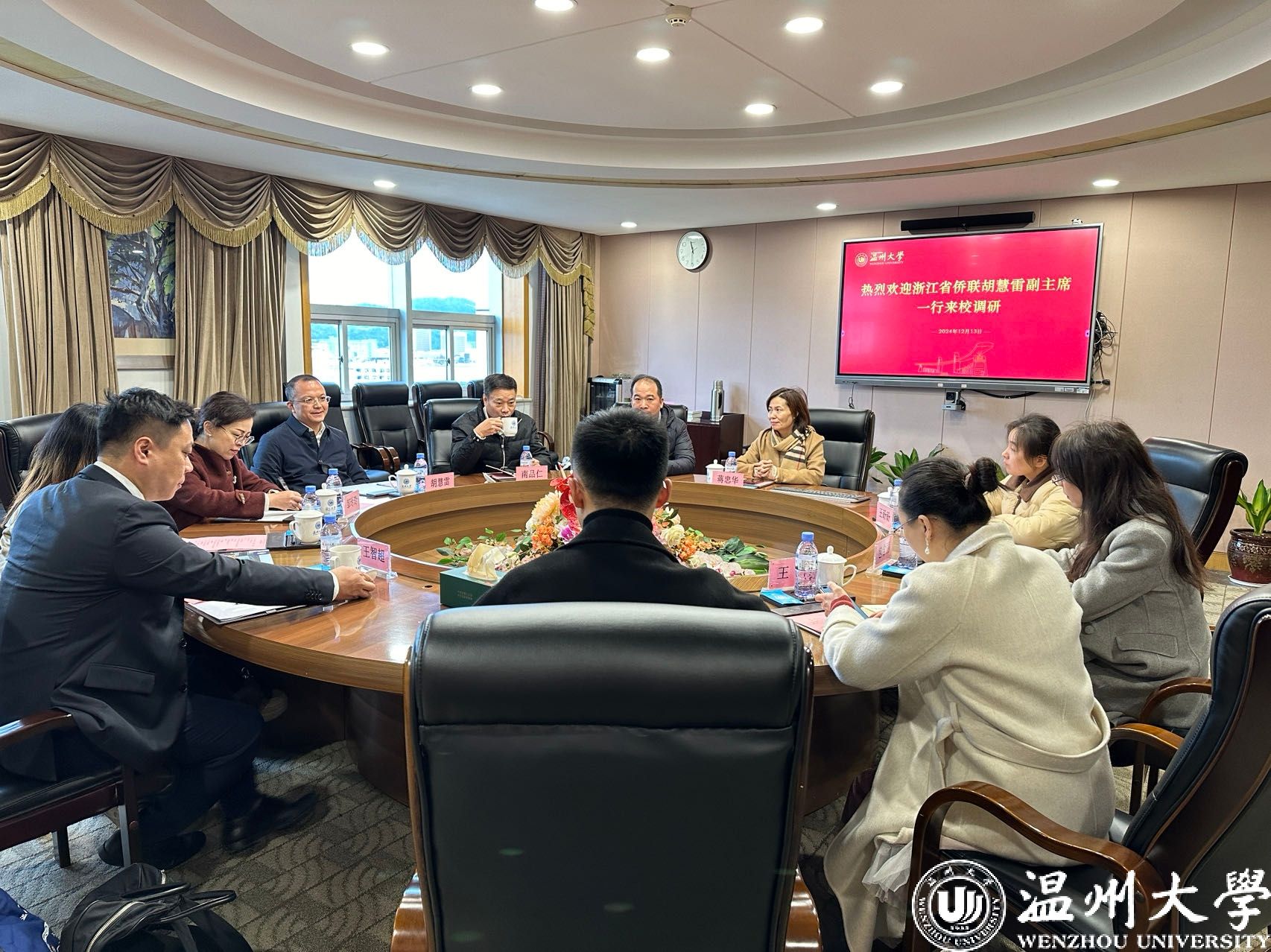 12月13日上午,浙江省侨联党组成员、副主席胡慧雷一行来访sunbet申愽官网,开展华文教育工作专题调研。浙江省侨联文化交流和信息传播部部长邹玲玲、温州市侨联主席南品仁陪同调研。sunbet申愽官网副校长、党委委员王舜出席座谈会。意大利罗马中华语言学校校长蒋忠华,西班牙博思语言学校校长潘丽丽,威尼斯屿你国际教育中文学校校长王智超以及华侨学院相关教师等参加座谈。