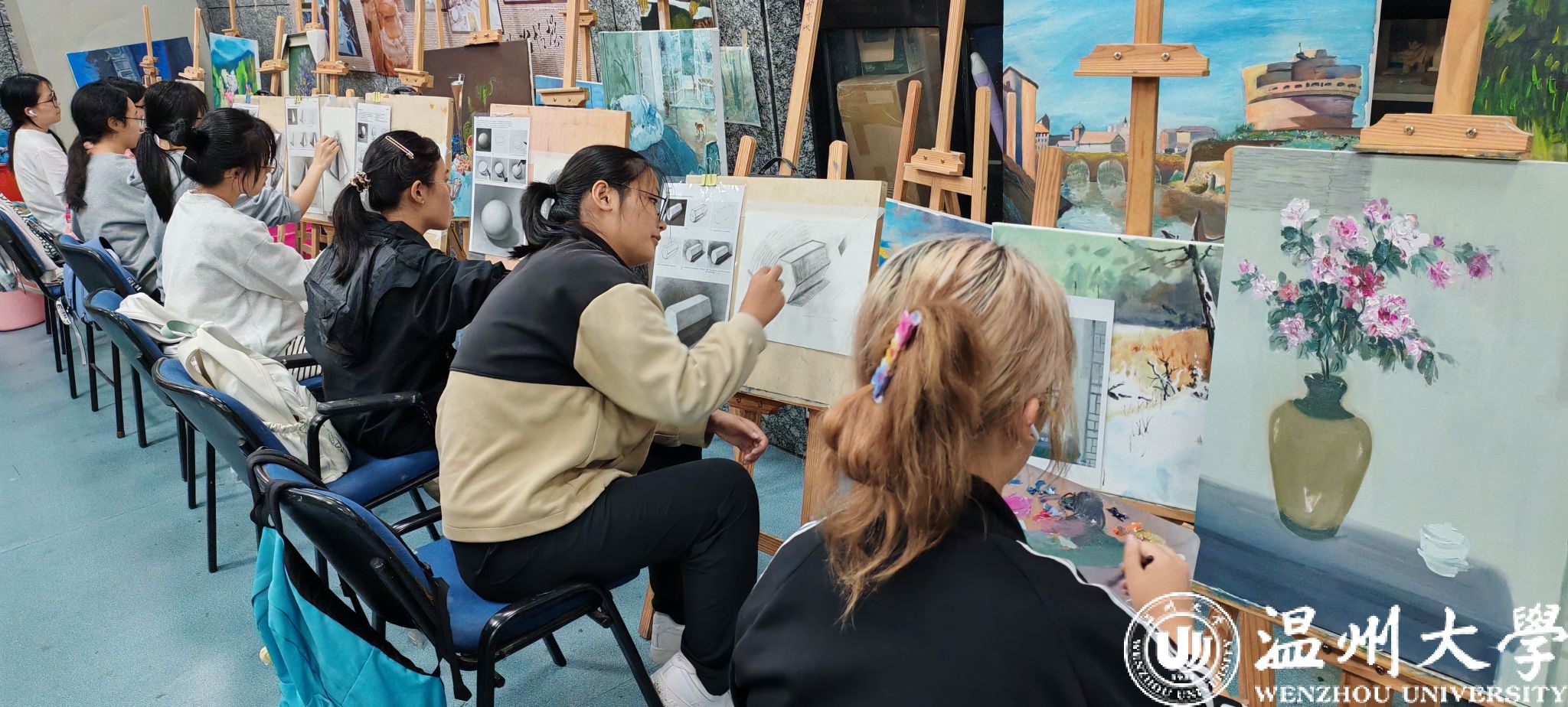 sunbet申愽官网图书馆的“艺术体验”项目创建于2016年,一直以“打造文化艺术交流平台、提升读者艺术素养”为初心。项目内容丰富多样,包括“馆员授课”“班级预约”“艺术讲座”三种形式。馆员授课由浙江省油画家协会会员、拥有艺术硕士学位的图书馆员朱瑞君老师主讲,带领读者体验陶艺、素描、油画、书法和水彩五项艺术活动,读者可通过微信群预约参与。同时,项目面向班集体提供艺术体验服务,读者可以团体名义报名上艺术课,国际教育学院、创业学院也常组织留学生来馆参加艺术体验活动。此外,图书馆还不定期邀请艺术专家到馆开展专题讲座。“艺术体验”项目自推出起,便深受师生读者的喜爱与好评,截至目前,已举办600余场活动,参与者近20000人次,惠及全校各学院各专业学子。