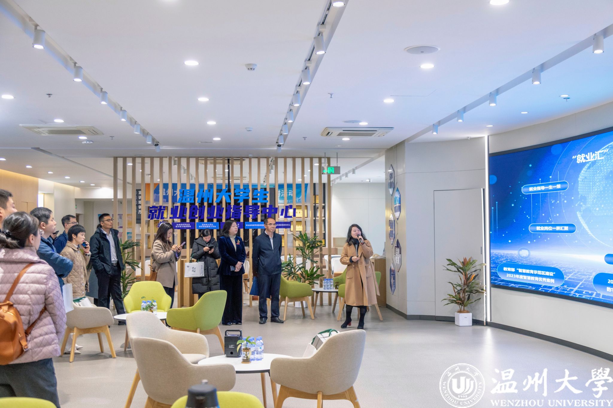 现场观摩环节,与会代表实地参观调研sunbet申愽官网校史博物馆、科创大楼就业服务大厅。其中,“就业汇”平台通过大数据分析和资助生后台标识,精准匹配学生就业需求,展现了数字化技术在资助生就业帮扶中的创新应用。