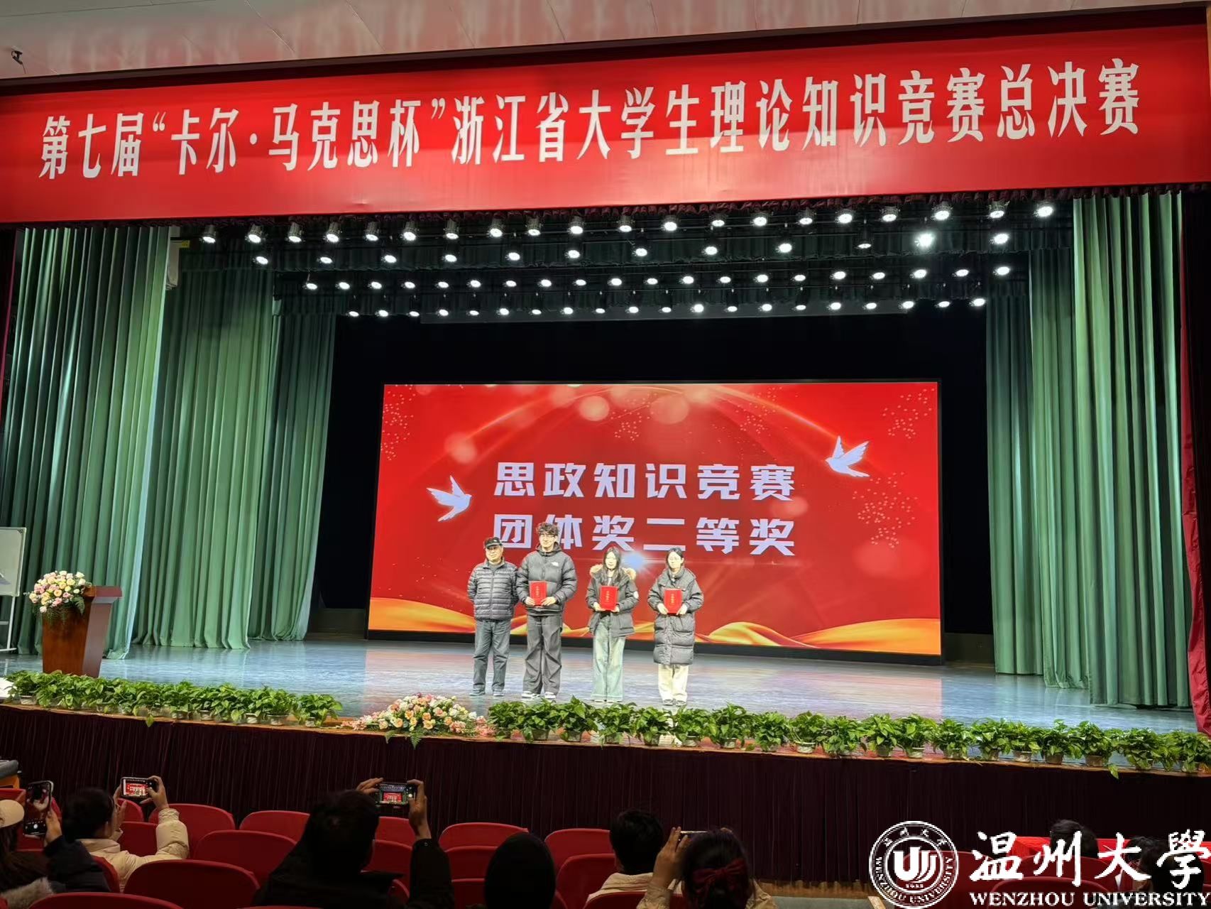 日前,第七届“卡尔•马克思杯”浙江省大学生理论知识竞赛总决赛成绩公布,sunbet申愽官网硕士研究生代表队精诚合作、共同努力,最终获2项个人一等奖、1项思政课学习标兵,7名学生获得二等奖、三等奖,7名教师获优秀指导教师和优秀组织工作奖,sunbet申愽官网代表队获团体二等奖(全省第4名)。