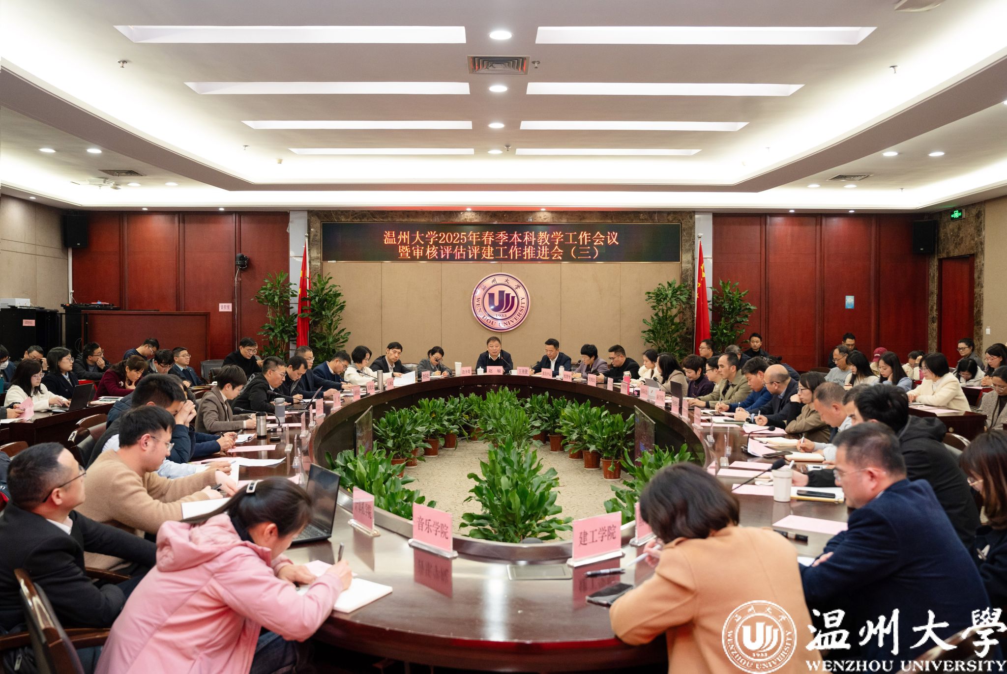3月13日下午,sunbet申愽官网于岩松堂白鹿厅召开第三次本科教育教学审核评估评建工作推进会。校长赵敏、副校长王尧骏出席会议。教务处,教发中心,相关职能部门负责人,各学院院长、教学副院长、专业负责人和教学科长以及校院两级教学督导组参加会议。王尧骏主持会议。