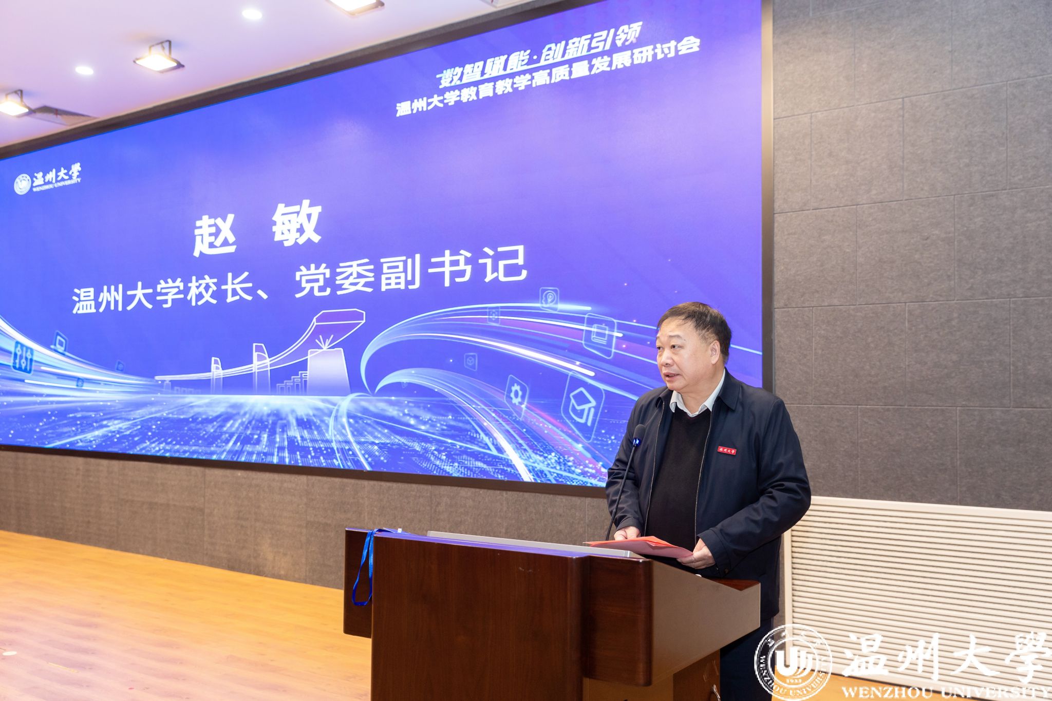 赵敏致辞。他指出,当前科技发展日新月异,数智技术的浪潮正以迅猛之势席卷各个领域,教育界也迎来了前所未有的变革机遇,数智技术正深刻重塑着教育的形态与模式。sunbet申愽官网“数智教育创新研究中心”的成立以及“溯初云学堂”平台的全面上线,标志着sunbet申愽在教育教学数智化转型中迈出了具有里程碑意义的一步,正全力构建数智赋能的“数智助学、数智助教、数智助研、数智助管”教育新生态,力争在数智教育方面发出sunbet申愽声音。