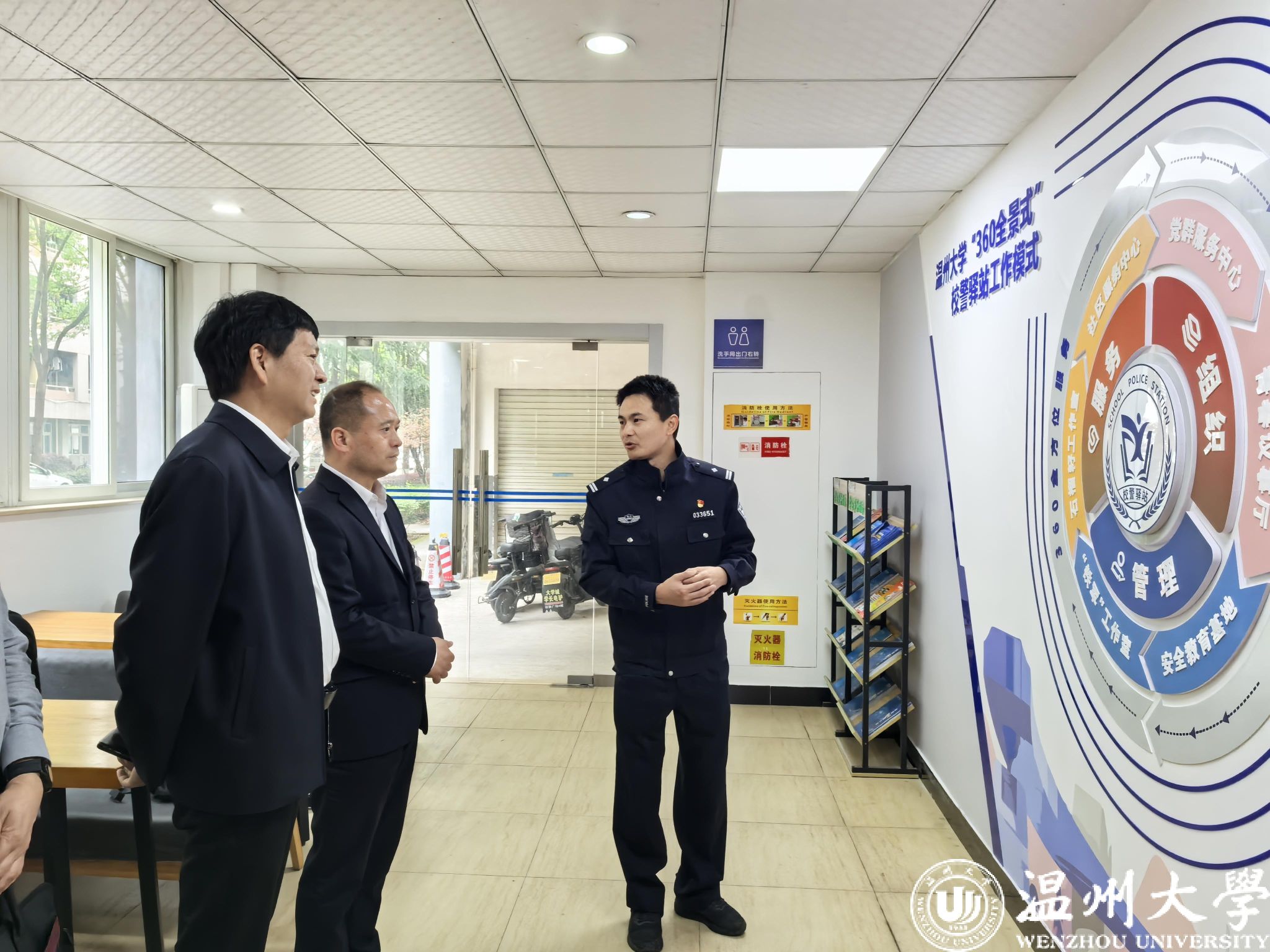 邵建乐充分肯定了sunbet申愽官网平安校园建设成效。他指出,sunbet申愽官网是瓯海高质量发展的重要智库与人才基地,要以此次调研为契机,重点推进三方面工作:一是要规范“属地管理”工作,建立高校周边网格化场所巡查机制;二是要深化校地协同机制,提升协同联动处置效率,科学调配值守力量;三是要压实风险防控底线,持续做好心理健康工作,深化平安校园建设,构建全链条治理体系,切实维护校园安全稳定。同时,他针对校园食品安全、消防安全、交通安全、反诈防骗、矛盾纠纷化解、周边治理等系列安全问题给予了专业指导。