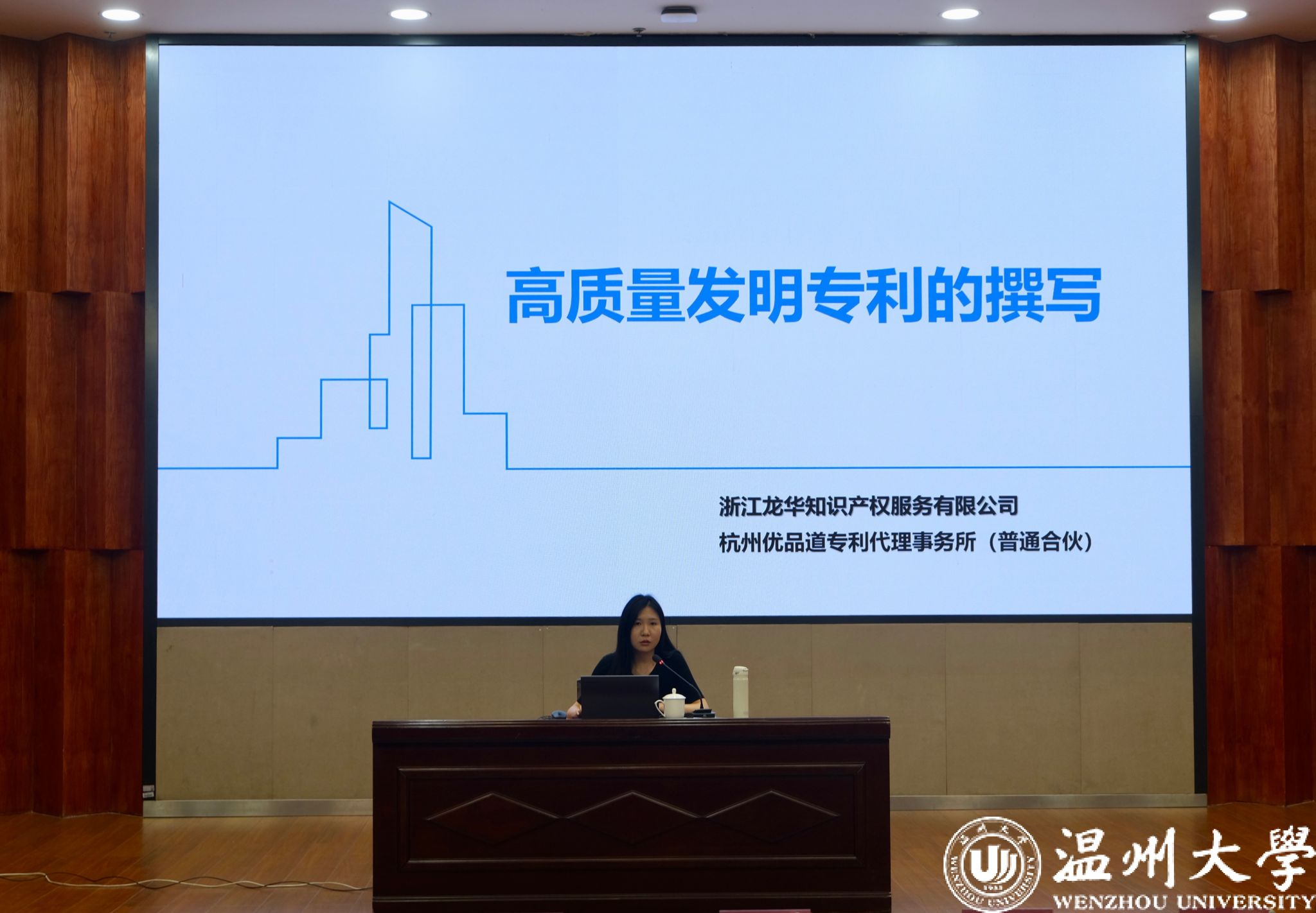 专题培训中,浙江省知识产权保护中心副部长肖倩乔以“非正常申请专利行为解读”为主题,结合典型案例,细致讲解了当前专利申请中的政策法规及法律风险,为师生提供了清晰的合规指引。浙江龙华知识产权服务有限公司专利技术负责人李佳围绕“高质量专利的撰写”展开讲解,从技术交底书撰写、权利要求布局到审查标准应对,层层拆解实务技巧,现场反响热烈。