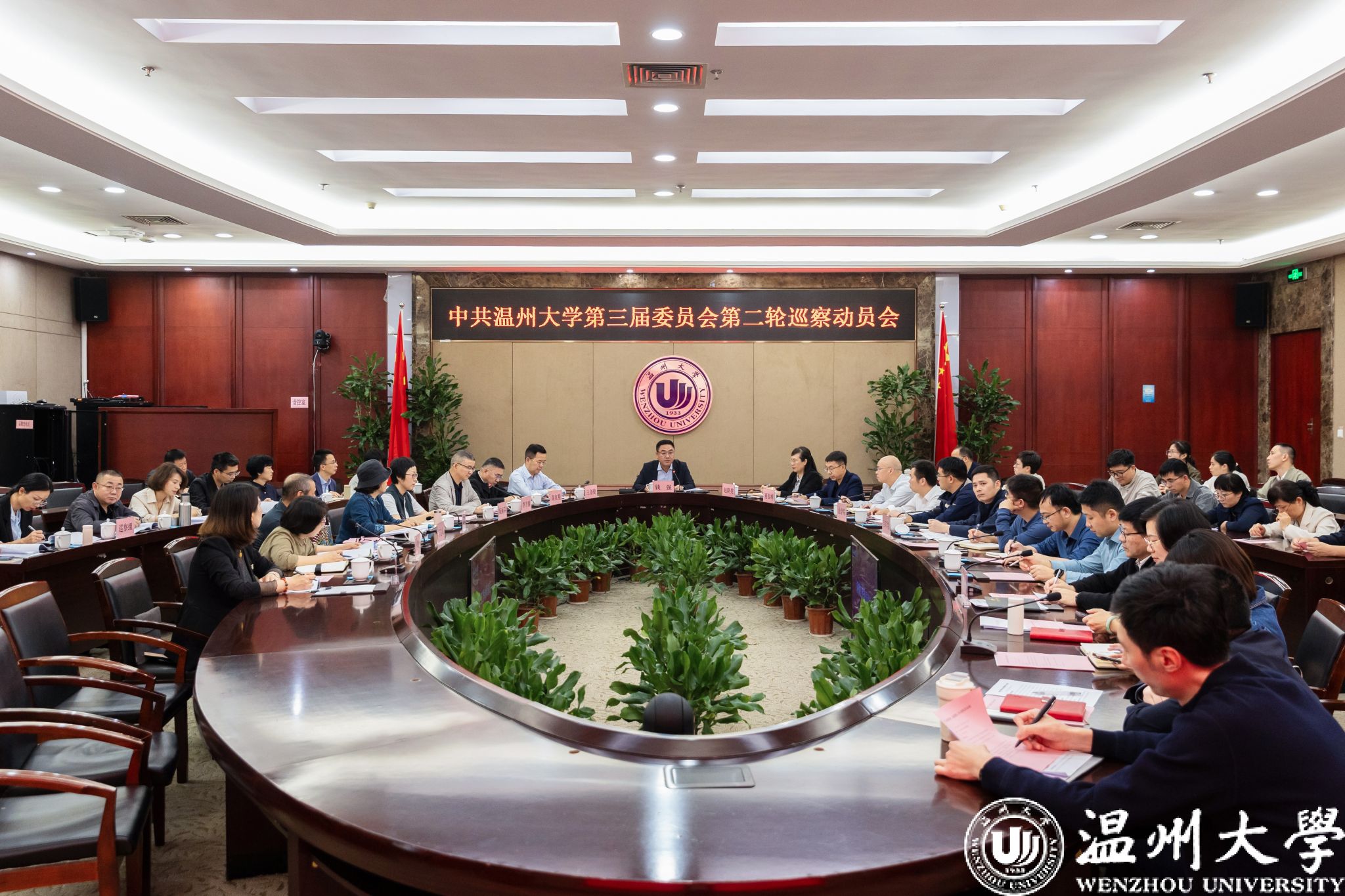 4月24日下午,学校召开第三届党委第二轮巡察工作动员会。校党委巡察工作领导小组组长、党委书记钱强,联系法学院校领导、党委副书记赵降英,联系生命与环境科学学院校领导、副校长王尧骏,校党委巡察工作领导小组成员、党委委员、组织部部长夏春雨出席会议;校党委巡察办负责人主持会议。