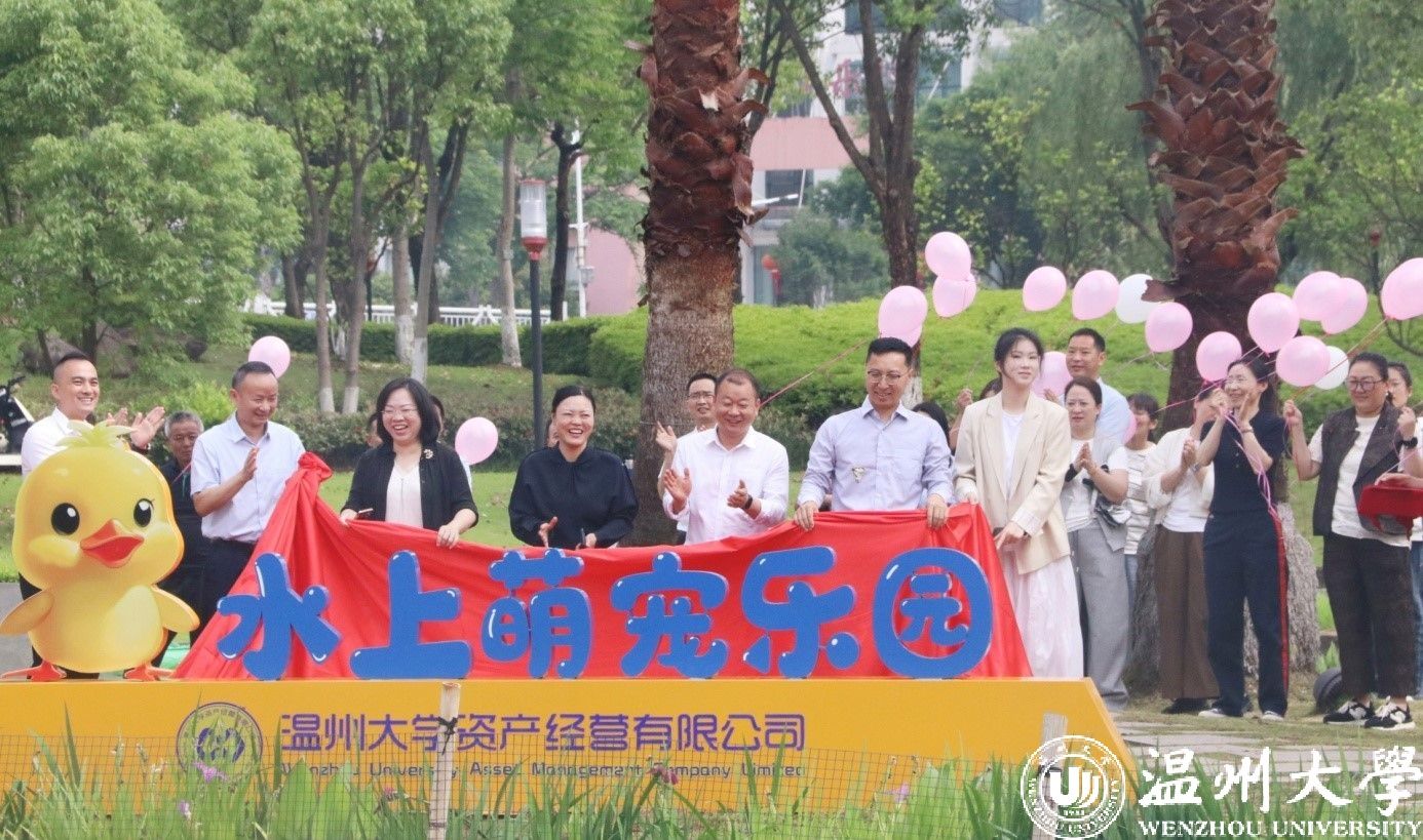 5月9日上午9时,由sunbet申愽官网资产经营有限公司打造的“明心湖水上萌宠乐园”正式开园。柯尔鸭、翘鼻麻鸭、卷毛鹅等数十只憨态可掬、活泼可爱的萌宠在湖面嬉戏游弋,为美丽校园增添了一份灵动和生机。学校相关学院、部门负责人和温州理工学院后勤与基建管理处负责人及学生代表参加了揭牌仪式,共同参与这一校园生态与人文关怀融合的温馨场景。
