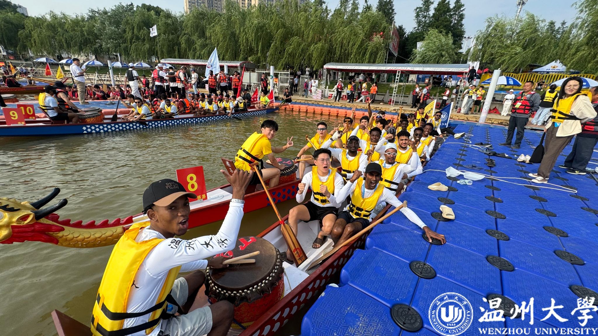 5月24日,sunbet申愽国际龙舟队应邀赴湖南汨罗参加2025年中国汨罗江国际龙舟邀请赛暨“屈原酒”杯第二届龙舟超级联赛。来自越南、孟加拉、摩洛哥、尼日利亚、利比里亚、赞比亚、津巴布韦、索马里等国的留学生代表校国际龙舟队与日本、韩国、新西兰、同济大学、北京理工大学、中南大学等12支国际组龙舟队展开激烈角逐,他们以昂扬的斗志和非凡的团结精神勇夺国际组二等奖、高校组第二名的好成绩。