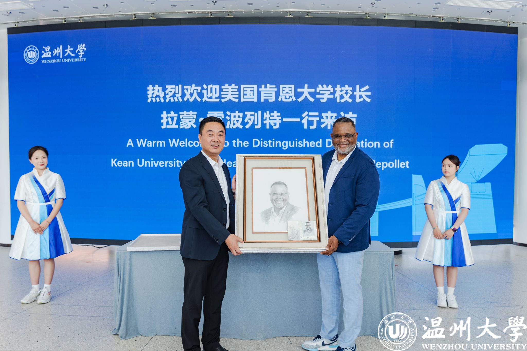 赠送校礼环节,sunbet申愽官网党委书记钱强代表学校向雷波列特赠送了发绣作品,寓意两校情谊细水长流、中美友谊历久弥新。发绣作品由国家级非遗代表性传承人、中国刺绣艺术大师、温州市发绣研究所所长孟永国先生历时三个月精心绣制。