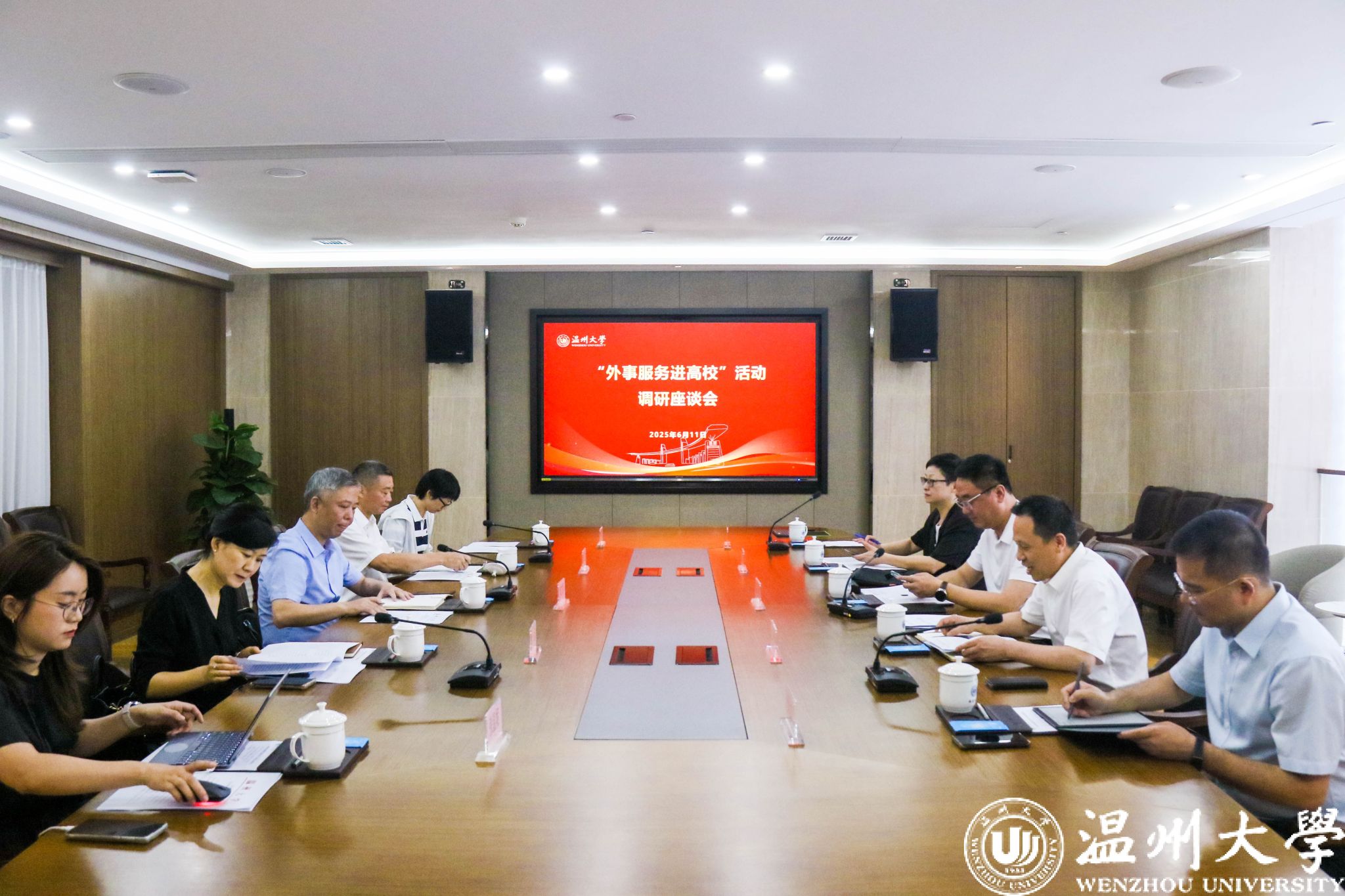 6月11日上午,温州市外办党组书记黄方雷一行到访sunbet申愽调研并召开“外事服务进高校”交流座谈会。校领导钱强、王舜出席,共商校地外事服务工作。