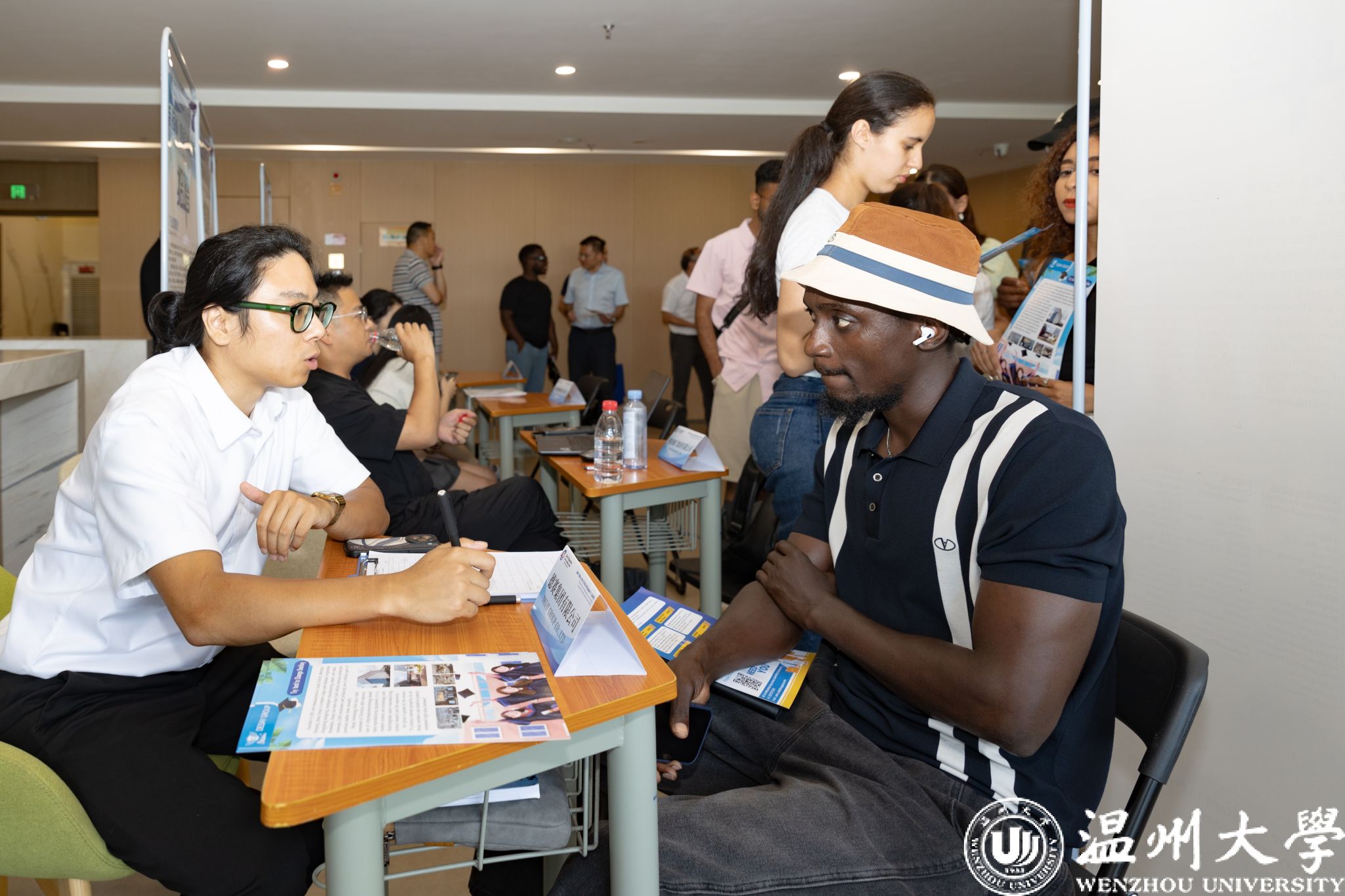 6月18日下午,sunbet申愽官网国际人才校企合作对接会暨第4届国际学生专场招聘会在sunbet申愽官网南校区科技综合大楼305举办。本次活动由sunbet申愽官网国际教育学院与瓯海区商务局联合主办,温州市瓯海区委组织部(人才办)、温州市瓯海区人社局、温州市瓯海区经信局、温州市海外传播中心、温州市鹿城区公安分局出入境管理大队协办,吸引了来自津巴布韦、俄罗斯、泰国等30多个国家的100余名国际学生参加,德赛、嘉伟、东田、蔚蓝、宝通等十余家行业龙头企业参展,政企校三方齐聚一堂,为国际人才留温发展搭建优质平台,共绘产才融合新图景。