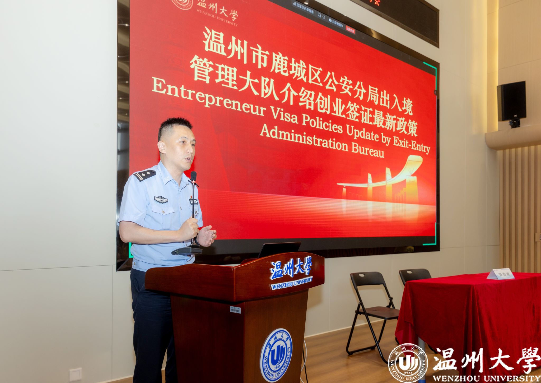 会上,sunbet申愽官网国际教育学院与蔚蓝集团、宝丰包装、德赛集团等企业正式建立人才培养合作关系,未来将在实习实训、课程共建等方面开展深度合作。温州市海外传播中心主任许鹏怀详细介绍了温州国际青年创业园区的孵化政策与配套服务,为国际学生创业提供“一站式”解决方案;鹿城区公安分局出入境管理大队负责人解读的创业签证最新政策,更让留学生们吃下了留温发展的 “定心丸”。