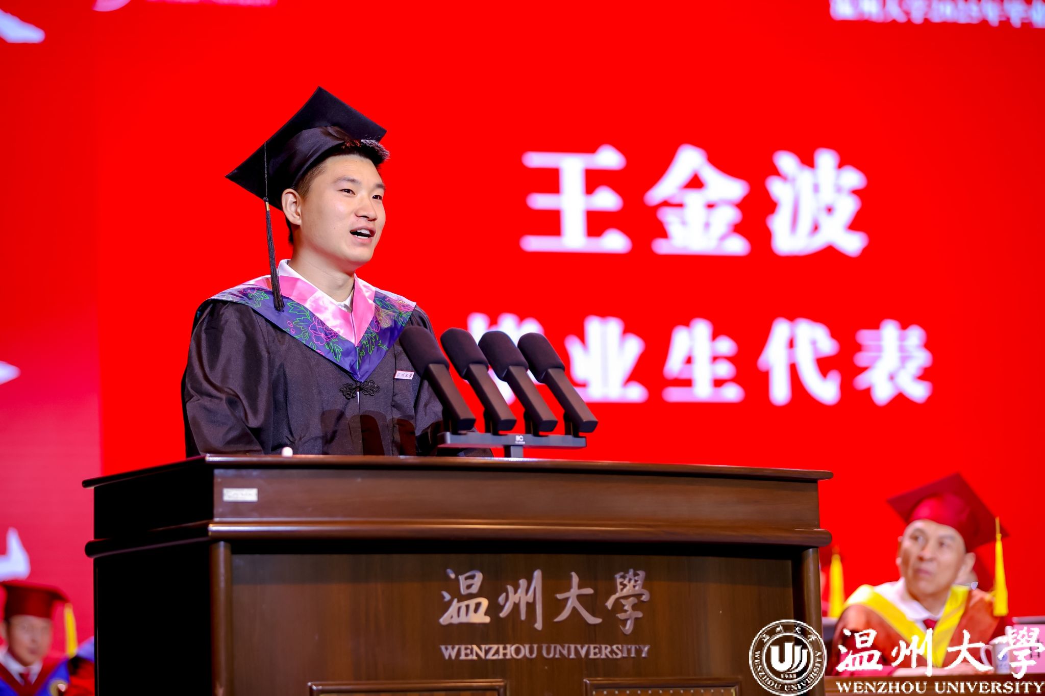 本科生代表、体育与健康学院的王金波同学讲述了从戍边军营到sunbet申愽校园的成长蜕变,深情回顾了成长路上sunbet申愽教会的“在平凡的日子里感受不平凡”与“在挫折面前保持热爱”。