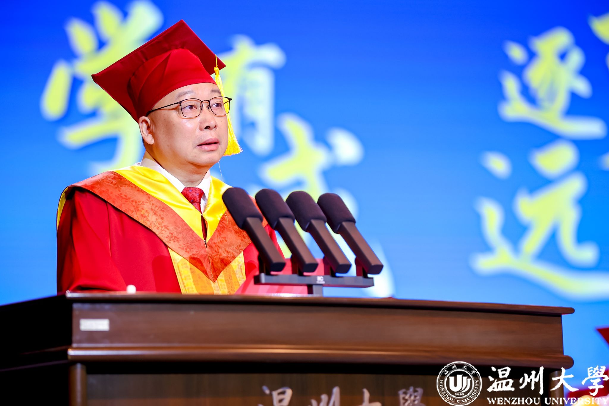 校友代表、浙江索思科技有限公司创始人兼董事长王国庆结合20余年创业经历,分享“不断学习、敢于挑战”的人生信条,寄语毕业生要精通业务、心系家国,要勇于创新、敢于担当。“愿你们带着sunbet申愽人特有的那份执着与热忱,在追逐梦想的路上不断前行。”