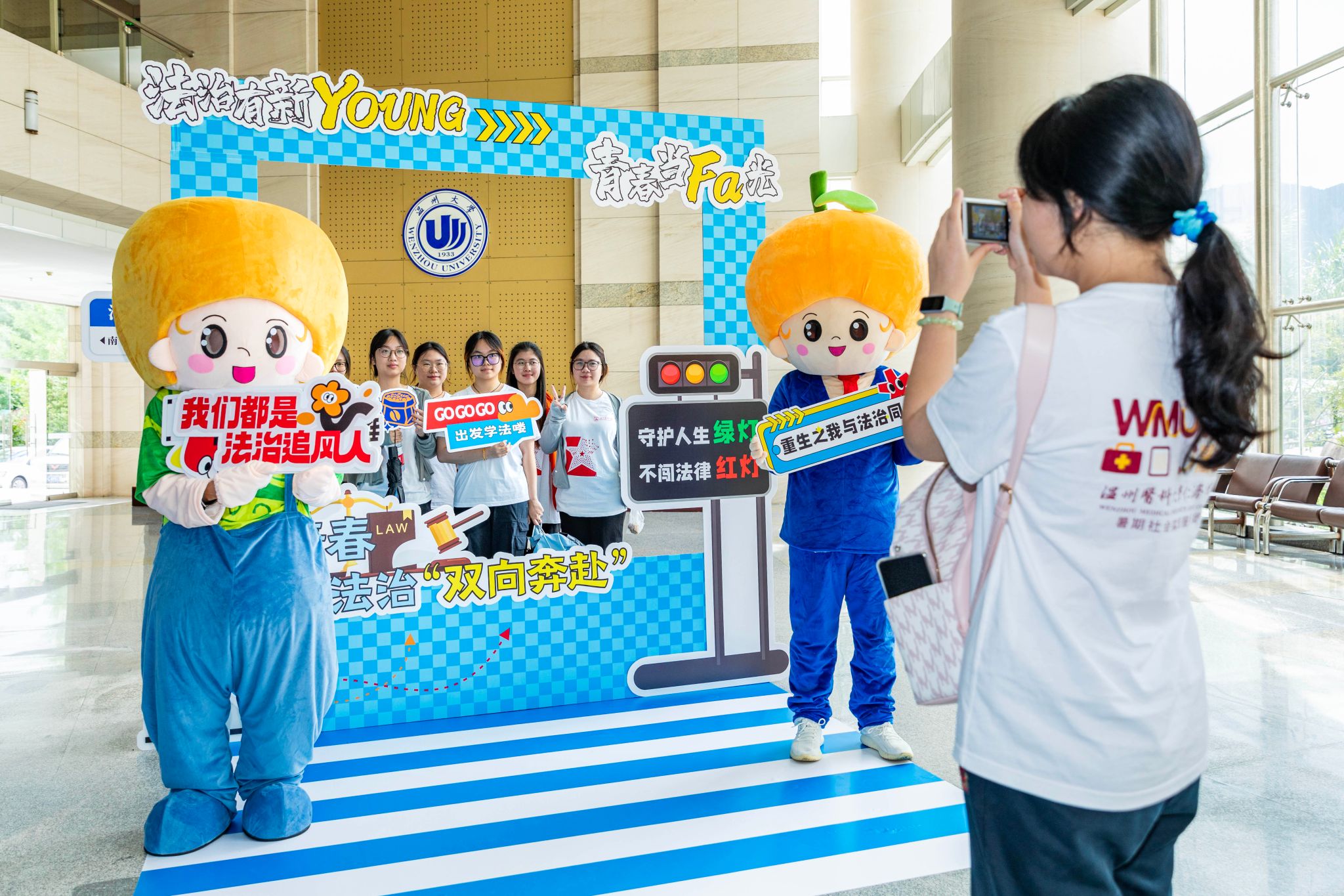 学生们在创意打卡区域拍照留念。