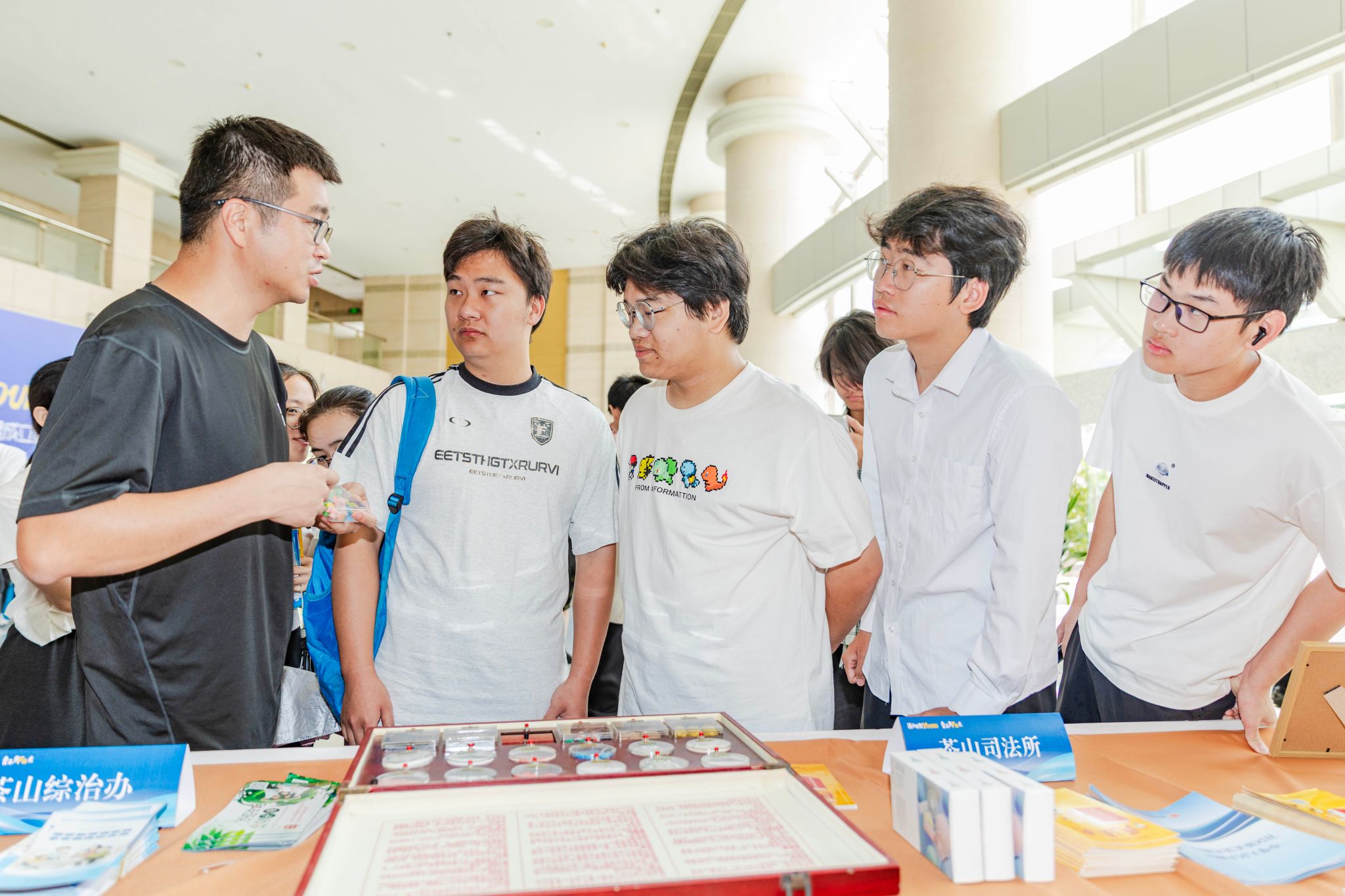 司法工作人员正为学生们讲解毒品的种类和危害,助力学生筑牢禁毒认知防线。