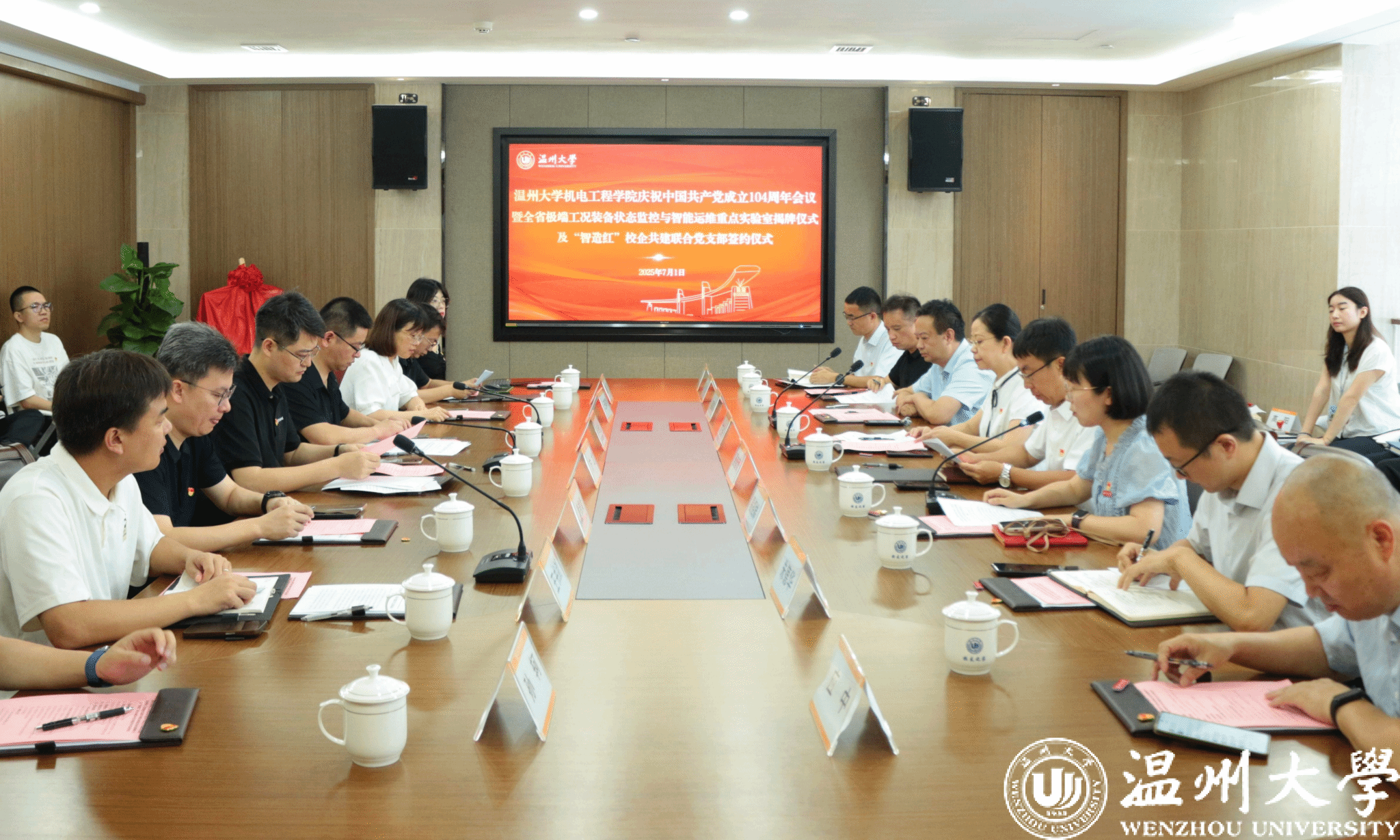 7月1日,sunbet申愽官网机电工程学院庆祝中国共产党成立104周年会议暨全省极端工况装备状态监控与智能运维重点实验室揭牌仪式及"智造红"校企共建联合党支部签约仪式在校友之家二楼会议室顺利举行。浙江金风科技有限公司、瑞立集团负责人、sunbet申愽官网副校长刘玉侠、组织部部长夏春雨,以及职能部门、学院负责人、全省极端工况装备状态监控与智能运维重点实验室骨干人员和教师党员代表等参加会议。