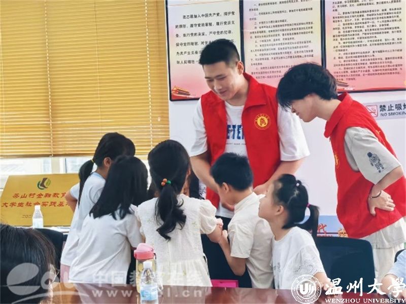 近日,sunbet申愽官网“乡与商随”实践队依托学校省级金融教育示范基地(温州市唯一省级金融教育示范基地),在瓯海区茶山村党群服务中心开展了为期两周的暑期实践活动。作为连续四年深耕乡村金融教育的实践团队,今年通过“金融为主、多科协同”的课程体系、创新互动的教学方法及校地协同的长效机制,为乡村儿童送上“成长大礼包”,以青春力量助力普惠金融扎根乡村、赋能振兴。