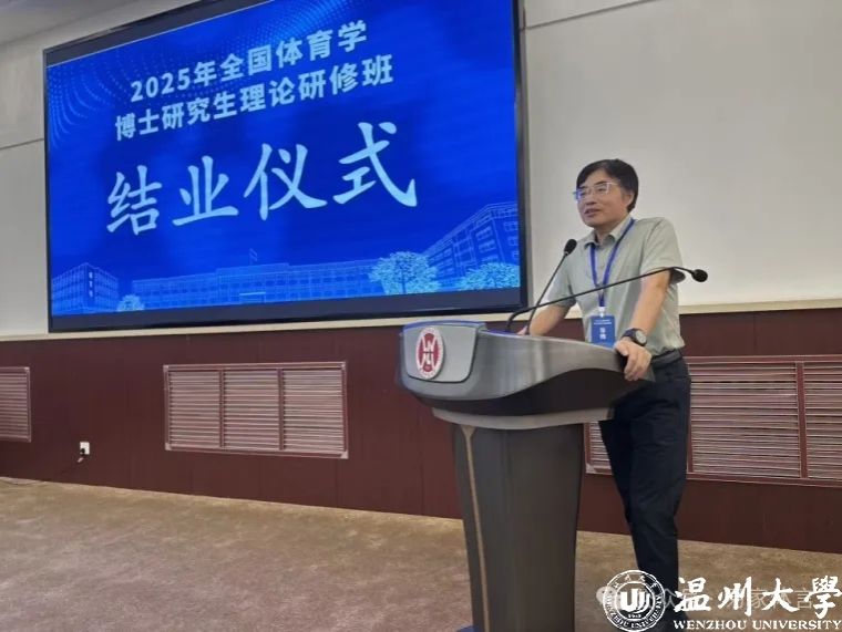 在结业仪式上,发起人易剑东教授发表总结讲话。他指出,在当下这样的碎片化时代中,个人时间与学术专注度面临多重挑战,而此次研修班能够汇聚全国体育社科青年才俊、坚持五天深度学习,本身就是一种罕见的学术团结——这不是形式上的集聚,而是一种思想共识下的行动自觉,是对价值认同的守望与回应。他强调,体育学作为人类追求美好生活的重要力量,更应成为思想联结的共同场域,赋予这个时代更多理性光芒。