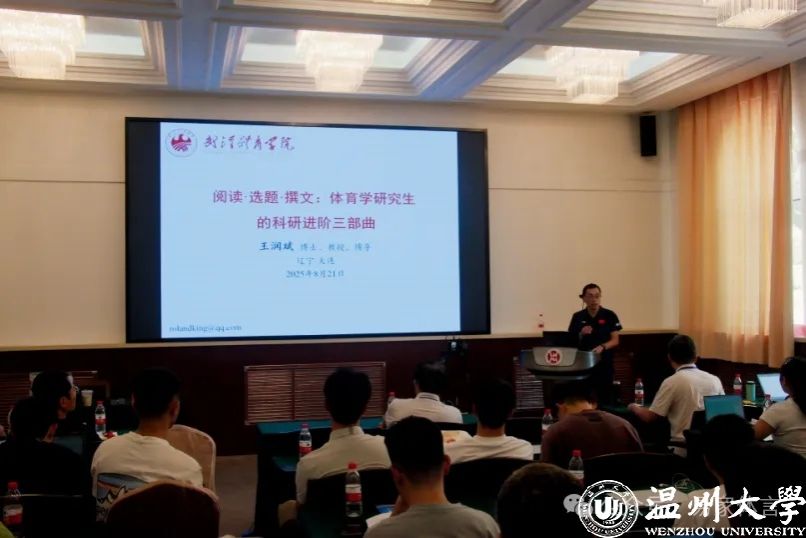 最后,王润斌教授以“阅读·选题·撰文:体育学研究生的科研进阶三部曲”为题,分享科研成长路径,帮助学员夯实学术功底。