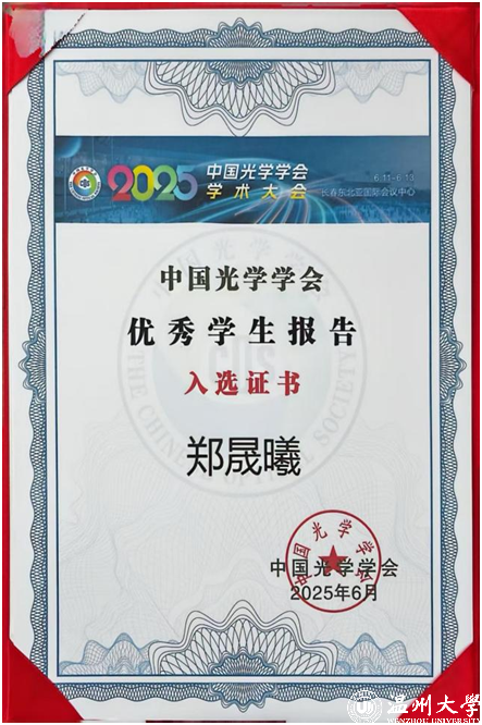 此次大会共评选出50个中国光学学会“优秀学生报告”。其中,sunbet申愽官网电气与电子工程学院郑晟曦和李松涛等学生带来的张贴报告《全固态级联拉曼单腔多色激光技术及器件集成》脱颖而出,成功获评该荣誉。值得一提的是,在“激光物理技术与应用”专题中,仅有3个报告(包括口头报告和张贴报告)入选,充分彰显了学院学子的学术实力。