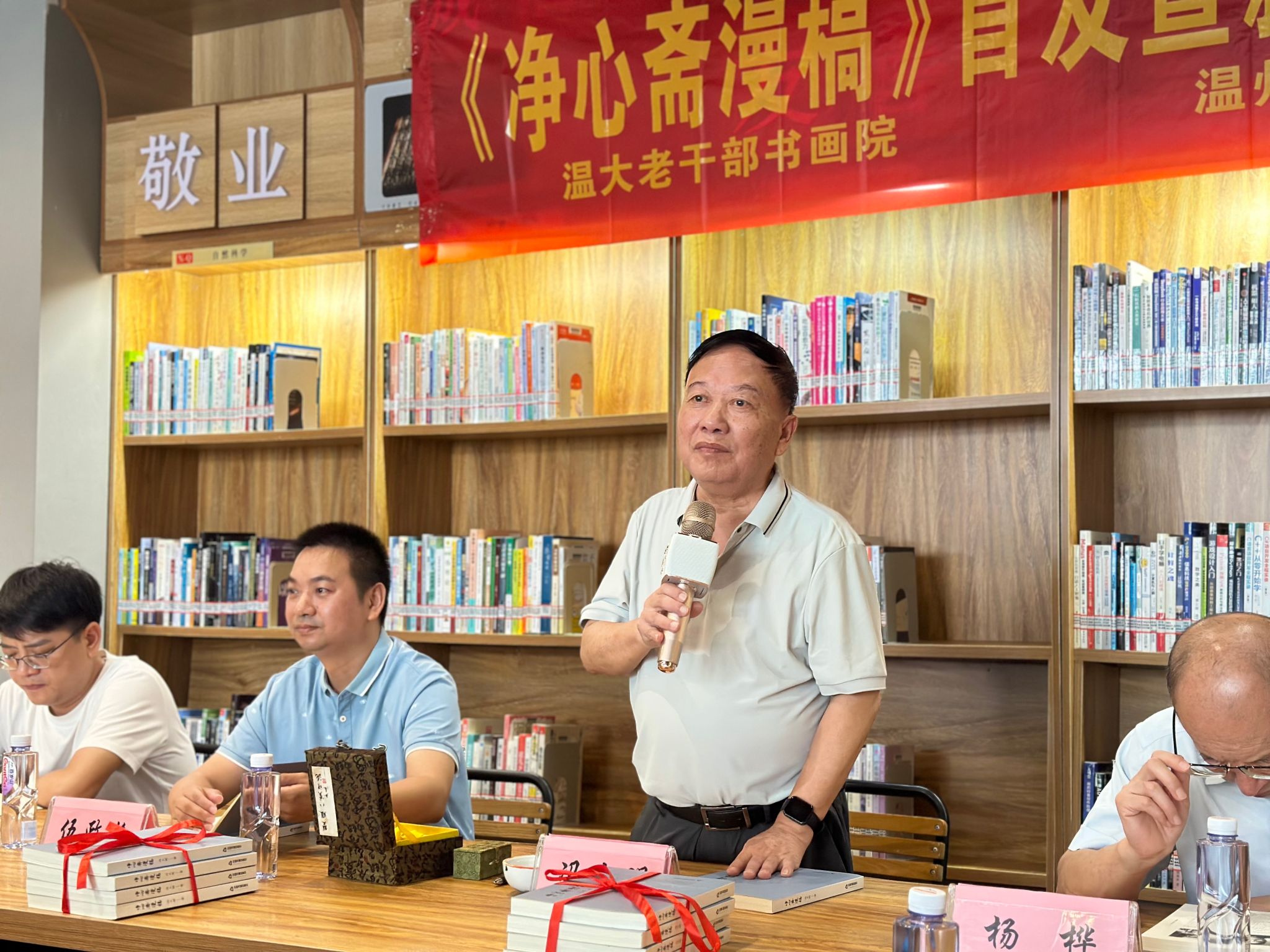 8月30日上午,温州智慧谷城市书房内,一场新书首发暨新书赠签活动热闹非凡,sunbet申愽官网老干部书画院院长冯大明与读者分享《净心斋漫稿》一书背后的创作故事。