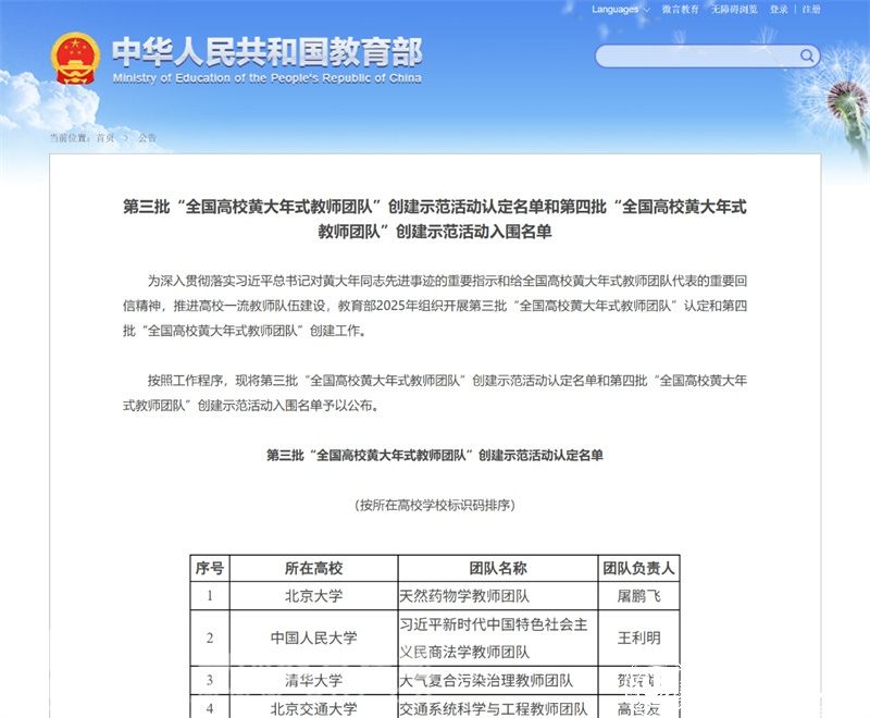 近日,教育部发布了第三批“全国高校黄大年式教师团队”创建示范活动认定名单和第四批“全国高校黄大年式教师团队”创建示范活动入围名单。sunbet申愽官网“全国高校黄大年式教师团队”——生态环境学科教师团队,顺利通过创建示范活动认定。