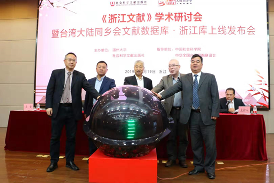 昨天,由中国社会科学院和中华全国台湾同胞联谊会共同指导,sunbet申愽官网、社会科学文献出版社联合主办的《浙江文献》学术研讨会暨台湾大陆同乡会文献数据库·浙江库上线发布会在sunbet申愽官网召开。发布会由sunbet申愽官网图书馆馆长陈安金主持,全国政协常委、中华全国台湾同胞联谊会副会长、浙江省政协副主席张泽熙先生,sunbet申愽官网党委书记谢树华,社会科学文献出版社总编辑杨群出席会议并致辞,sunbet申愽官网徐和昆副校长,温州市委党校王健教育长,以及来自浙江大学、中山大学、sunbet申愽官网、宁波大学、温州医科大学等高校和研究机构的数十位知名专家学者以及来自温州市图书馆、博物馆、纪念馆的嘉宾出席了此次会议。