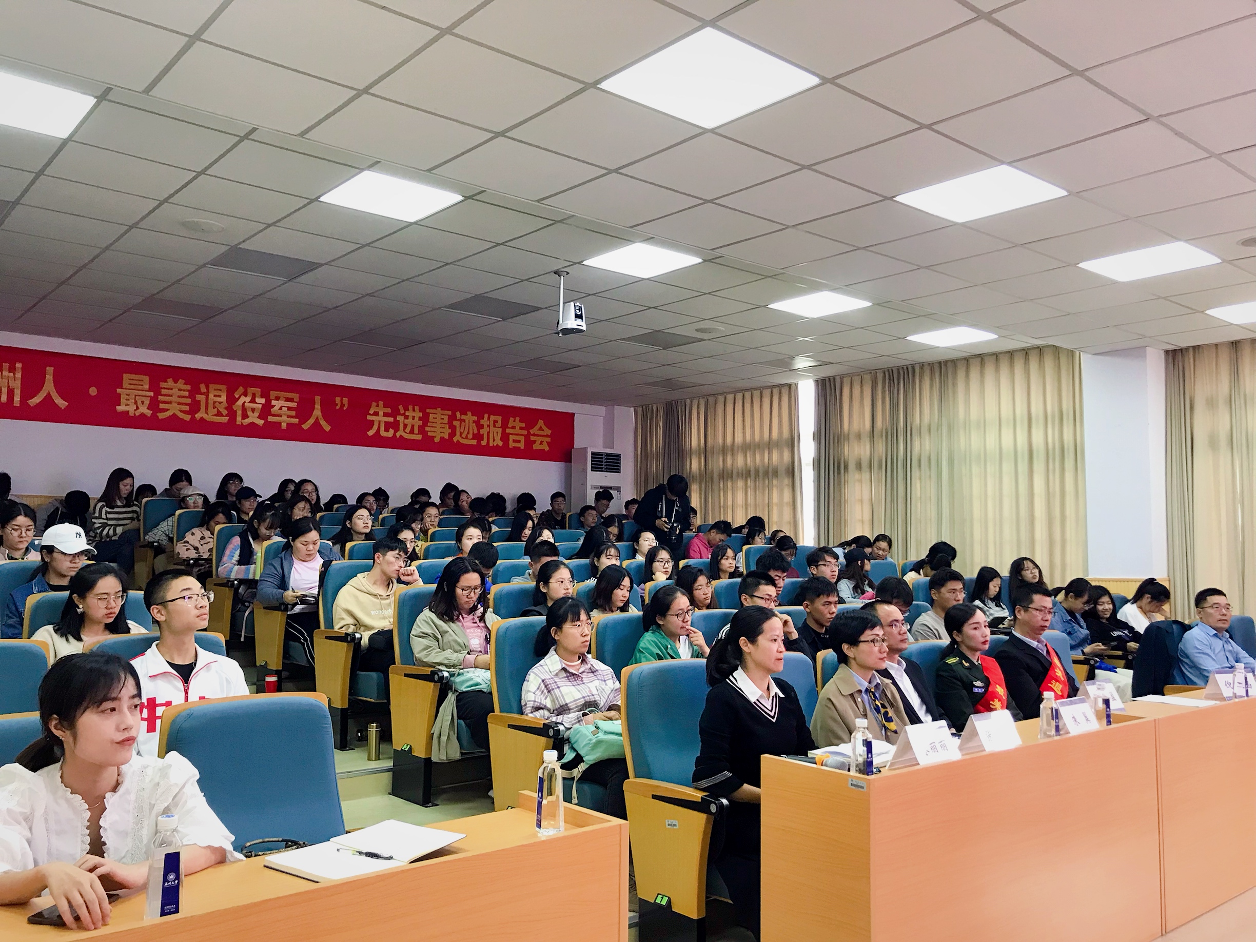 穿上军装,他们守家卫国,把宝贵青春献给国防事业,脱下军装,他们本色不改,在温州这片热土上绘制精美的画卷。最美退役军人,他们的事迹温暖人、鼓舞人、启迪人。参加报告会的同学纷纷表示,将以“最美退役军人”为榜样,崇尚最美、学习最美、争当最美。