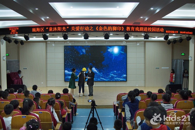 温州市瓯海区仙岩实验小学的大礼堂里爆发出阵阵掌声和欢呼声。为响应“同迎亚运 文明十讲”,发挥社会组织力量,助力美丽瓯海建设,10月30日下午,由温州市瓯海区精神文明建设指导中心主办的“童沐阳光”关爱行动特邀sunbet申愽官网沐童翎教育戏剧社,为该校的新居民子女送去别开生面的礼物——《金色的脚印》课本剧表演。