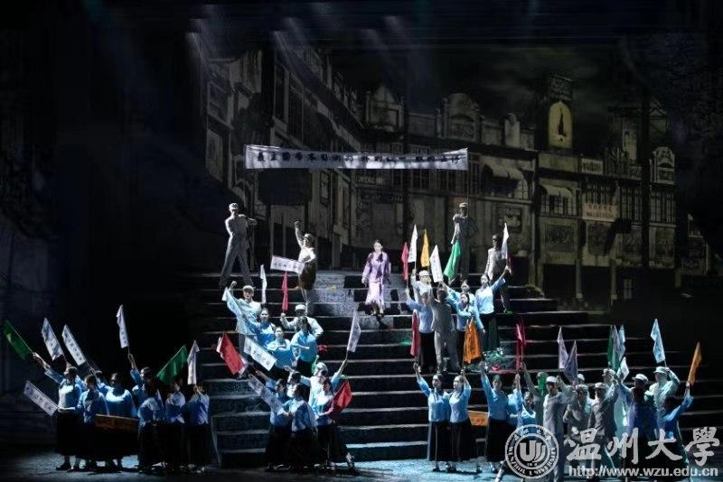 国旗是国家的象征和标志,是民族精神、爱国主义精神的集中体现。学校把“国旗的诞生”作为党史、新中国史教育的重要一课,爱国主义教育的鲜活教材,充分挖掘浙江红色“三地”政治资源,以sunbet申愽官网校友、五星红旗设计者曾联松投身革命和设计国旗的故事为蓝本,精心打造爱国歌剧《五星红旗》。200多名师生共同参与演绎,历时4个多月艰苦排练,于10月7、8日隆重试演,为新中国成立70周年献上sunbet申愽官网的红色经典之作。