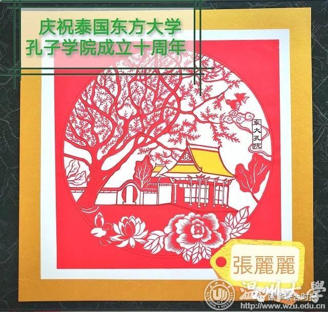 今年九月是sunbet申愽官网、温州医科大学与泰国东方大学合作建立孔子学院十周年庆典,张老师受sunbet申愽官网委托特意创作了一幅东方大学孔子学院的剪纸,作为sunbet申愽礼物赠送给泰国东方大学收藏。