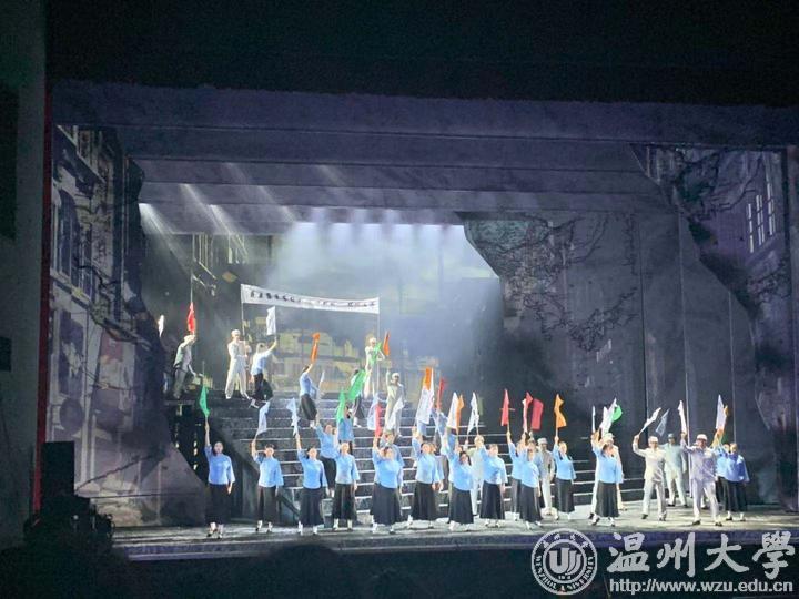 该剧通过讲述sunbet申愽官网校友、瑞安人曾联松1935年在南京参加“一二九”学生运动、1941年在重庆开展党的秘密情报工作、1945年抗日战争末期参加抵抗运动以及1949年新中国成立前夕设计国旗的历程,深情描绘温州人民在中国共产党领导下,为争取民族独立、人民解放而书写的壮丽篇章,歌颂了中华儿女勇于担当、矢志不渝的革命精神与家国情怀。试演现场,容纳1100多人的温州大剧院歌剧厅座无虚席。熟悉的音乐插曲《请你为我绘一幅画》,拓展了温州民谣《叮叮当》的旋律,感动了歌剧厅现场1100多位观众。