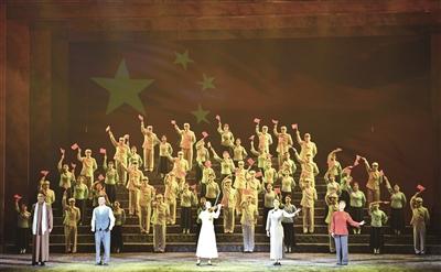 7日晚,温州市庆祝新中国成立70周年献礼剧——原创歌剧《五星红旗》在温州大剧院试演。