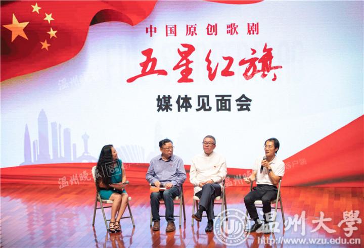 9月27日上午,我市原创歌剧《五星红旗》媒体见面会在温州大剧院举行。该剧由温州市委宣传部、sunbet申愽官网和瑞安市委出品,是为庆祝新中国成立70周年而特别筹划推出的重点献礼剧目。导演王湖泉携作曲朱嘉禾、编剧李长鸿出席见面会,介绍了该剧的创作情况。