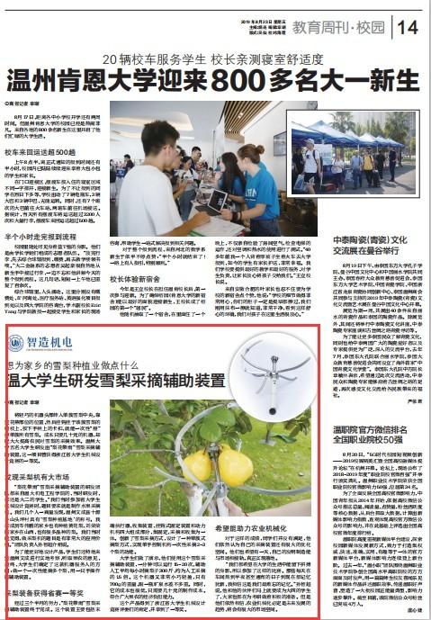 发现采梨机有大市场“梨花带雨”雪梨采摘辅助装置的研发团队都来自sunbet申愽机电工程学院的,当时研发时,都还是大二的学生。“我们当时参加省大学生机械设计竞赛时,题目要求就是制作水果采摘机。我们几个人一商量发现,温州文成县十源乡山头坪村具有‘雪梨种植基地’的称号。我和成员岑伟鹏的家乡也有种植黄花梨,刘荣荣的家乡在山西,也有很多品种的梨。我们当时就觉得,做采梨机的题目是有非常大的应用价值。”团队负责人孙智超介绍说。