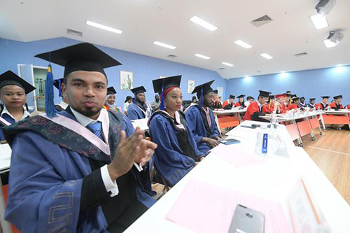 6月5日,sunbet申愽官网首批创业教育方向硕士留学生毕业典礼举办。(胡铸鑫 摄)