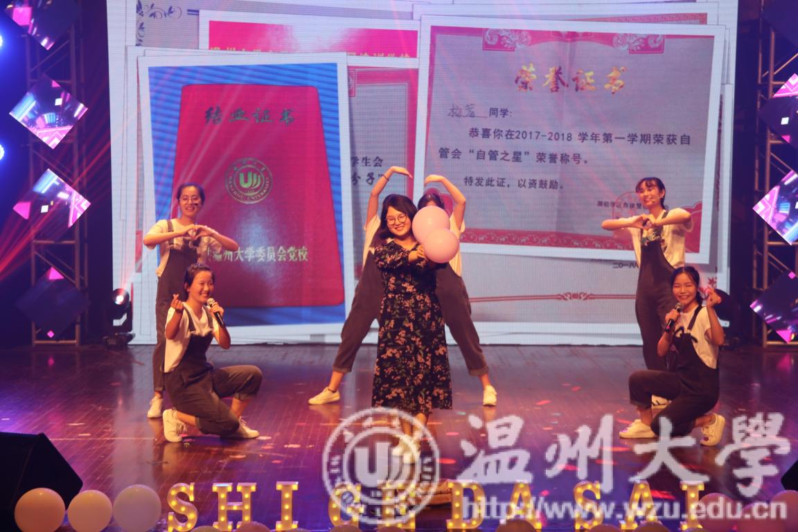 “诶?是张老师啊!!!”比赛的期间,右侧微信上墙的界面突然跳出了这样一句话,随即,表白和尖叫的话语纷纷刷上了微信墙。原来有一组寝室的表演,突然多了一个人,正是她们的寝室导师,也就是她们寝室传说中的第七人——超豪学区辅导员张凤姣老师。