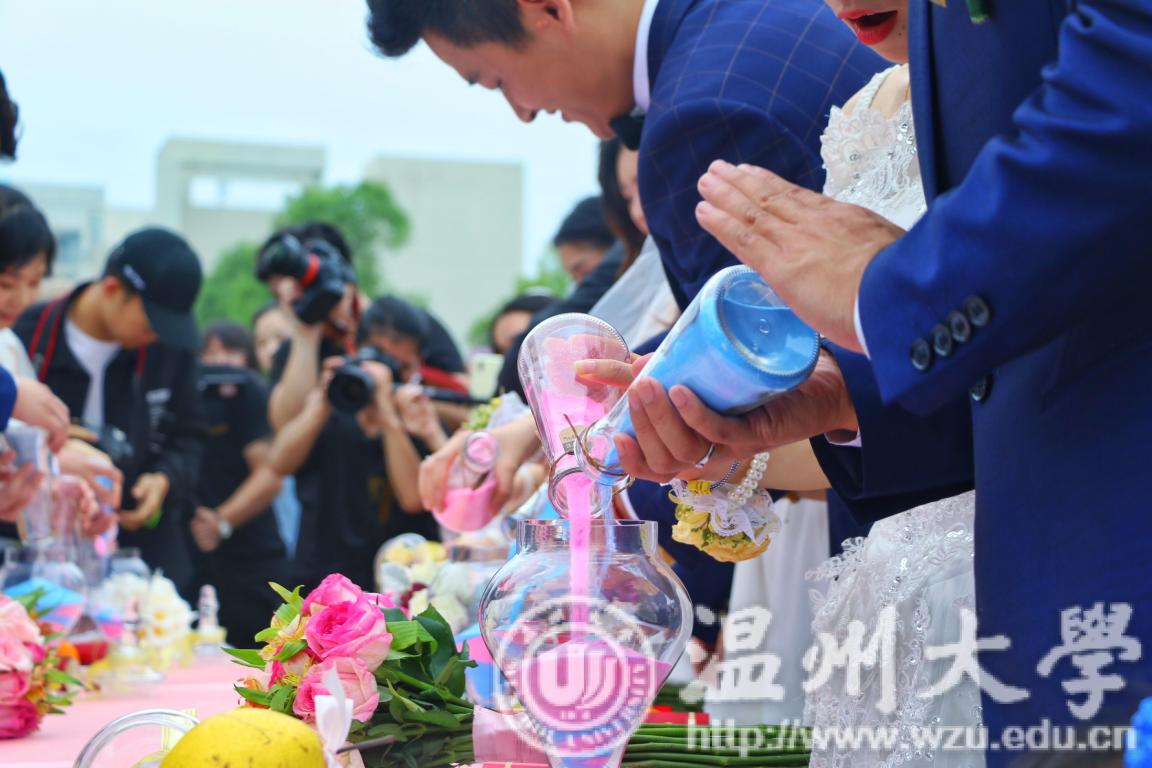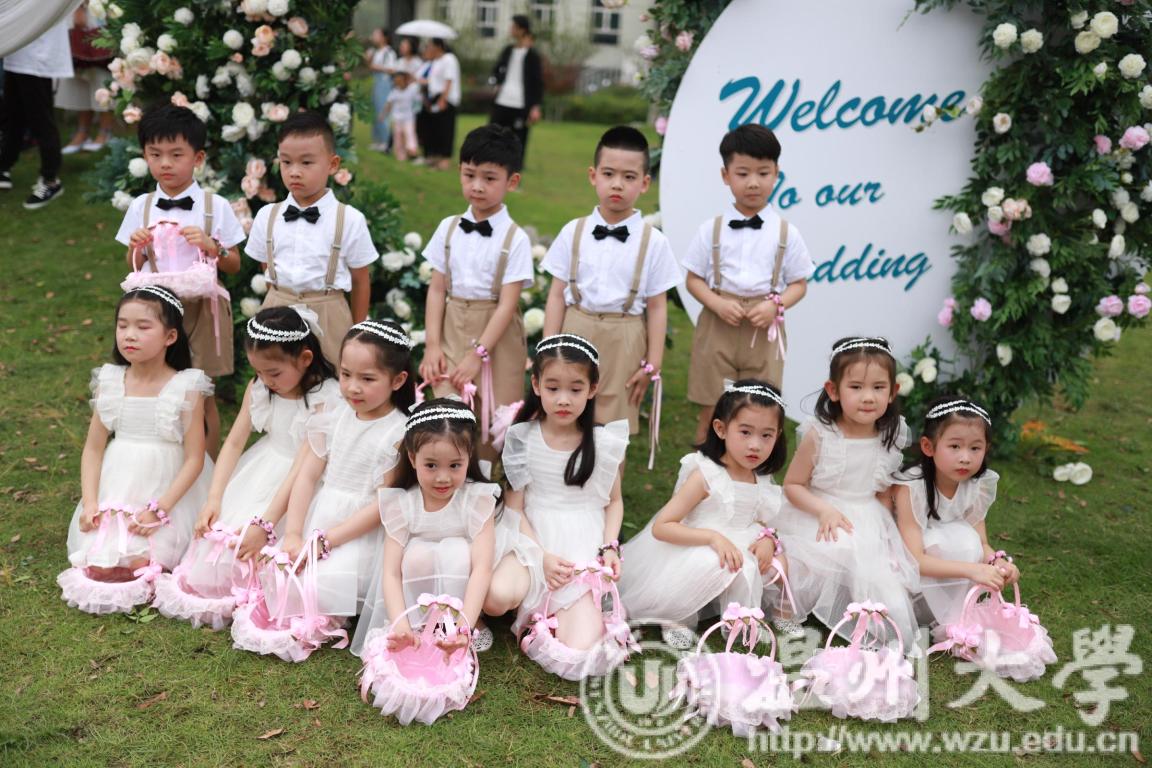 15对校友在百名师生的见证下,校长赵敏颁发结婚纪念证书,一同在sunbet申愽校园里留下珍贵合影。sunbet申愽官网附属实验幼儿园的小朋友们作为花童惊喜亮相,穿着漂亮的纱裙、帅气的西装,手携花篮,为每一对校友新人送上sunbet申愽官网专属纪念戒指。每一位最想见的恩师也邀至婚礼现场,为校友们送上瓯柑、鸭梨,寓意“大吉大利”。
