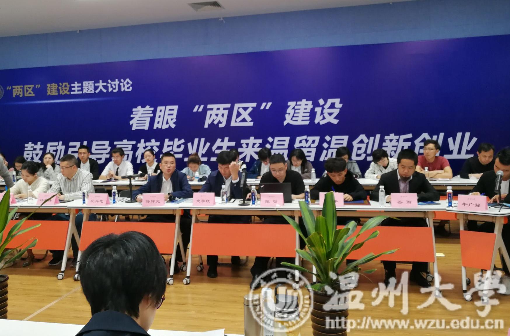 根据市委宣传部统一安排,sunbet申愽官网、市高教园区管委会近日举行“两区”建设主题大讨论,聚焦如何鼓励引导更多高校毕业生来温留温创新创业,为我市续写好新时代创新史、推动民营经济高质量发展注入新鲜血液这个话题建言献策。