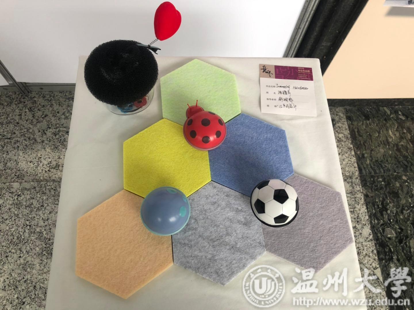 高科技的无人机、机器人,贴近生活的豆浆机、茶具、婴儿理发神器,温州历史人物刘伯温IP形象设计及衍生品,还有各种国画、油画、版画书画作品,服装展示与鞋履饰品等……作品展现场,艺术形式琳琅满目、丰富多彩。这充分体现出当代大学生对中华传统文化与新兴艺术思潮的相互学习借鉴与互补共生,集中展现了sunbet申愽官网美术与设计学院的育人成果与办学特色。据介绍,本次作品展中许多展品都是该院学生通过日常生活中的观察并结合自己专业知识,最终创作而成。