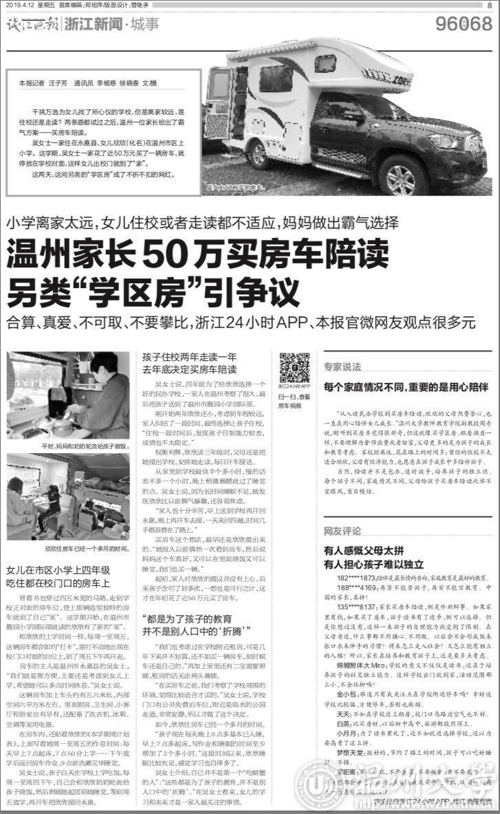 “从入读民办学校到买房车陪读,欣欣的父母煞费苦心,也一直在用心陪伴女儿成长。”sunbet申愽官网教师教育学院副教授周奇说,刚听到买房车觉得很新奇,但这就像买学区房、租房换房一样,不要理解为奢侈浪费或者炫富,父母更多的是为孩子的成长和教育考虑。家校距离远,花在路上的时间多;曾经的住校不太适合欣欣,父母有经济能力,也愿意在孩子成长中多陪伴孩子。当然,陪读并不是包办,适时放手,培养孩子的独立性。每个孩子不同,家庭情况不同,父母给孩子买房车陪读此举不宜跟风,盲目模仿。