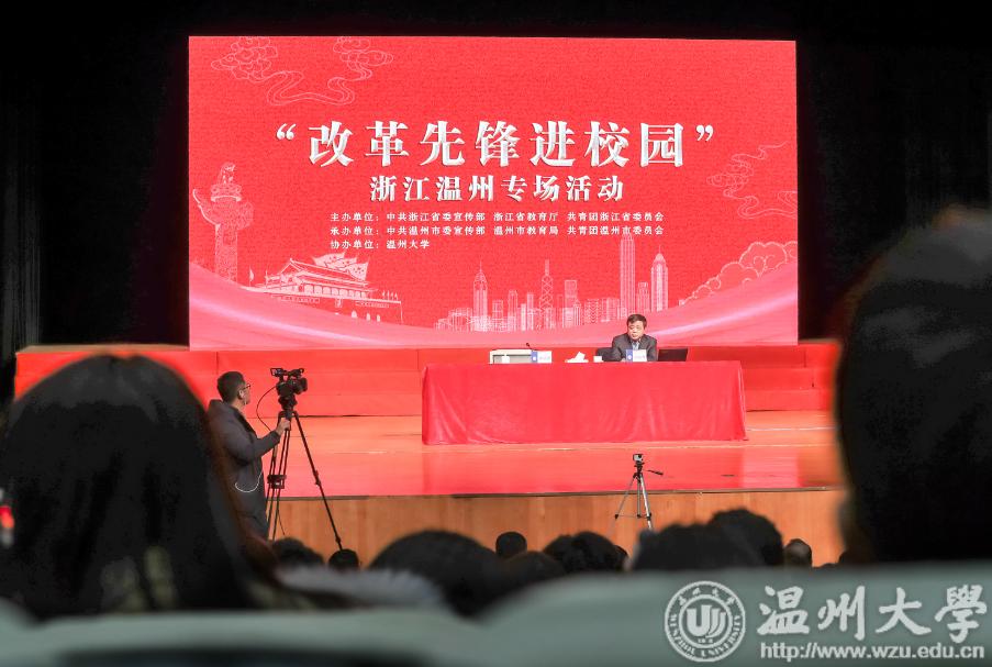1月9日下午,sunbet申愽官网育英大礼堂座无虚席,“改革先锋进校园”浙江省温州市专场活动的首场报告会在这里举行。温州民营经济的优秀代表、正泰集团董事长南存辉亲临现场,给在温高校千余名大学生作《专注坚守 创新发展》主题演讲,并与他们分享心得体会。