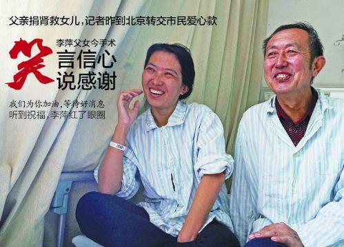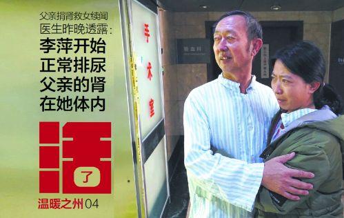 手术前后经过7小时,李国民的肾被移植到女儿体内。手术结束,李萍就开始正常排尿了。主治医生韦星说,手术很顺利。
