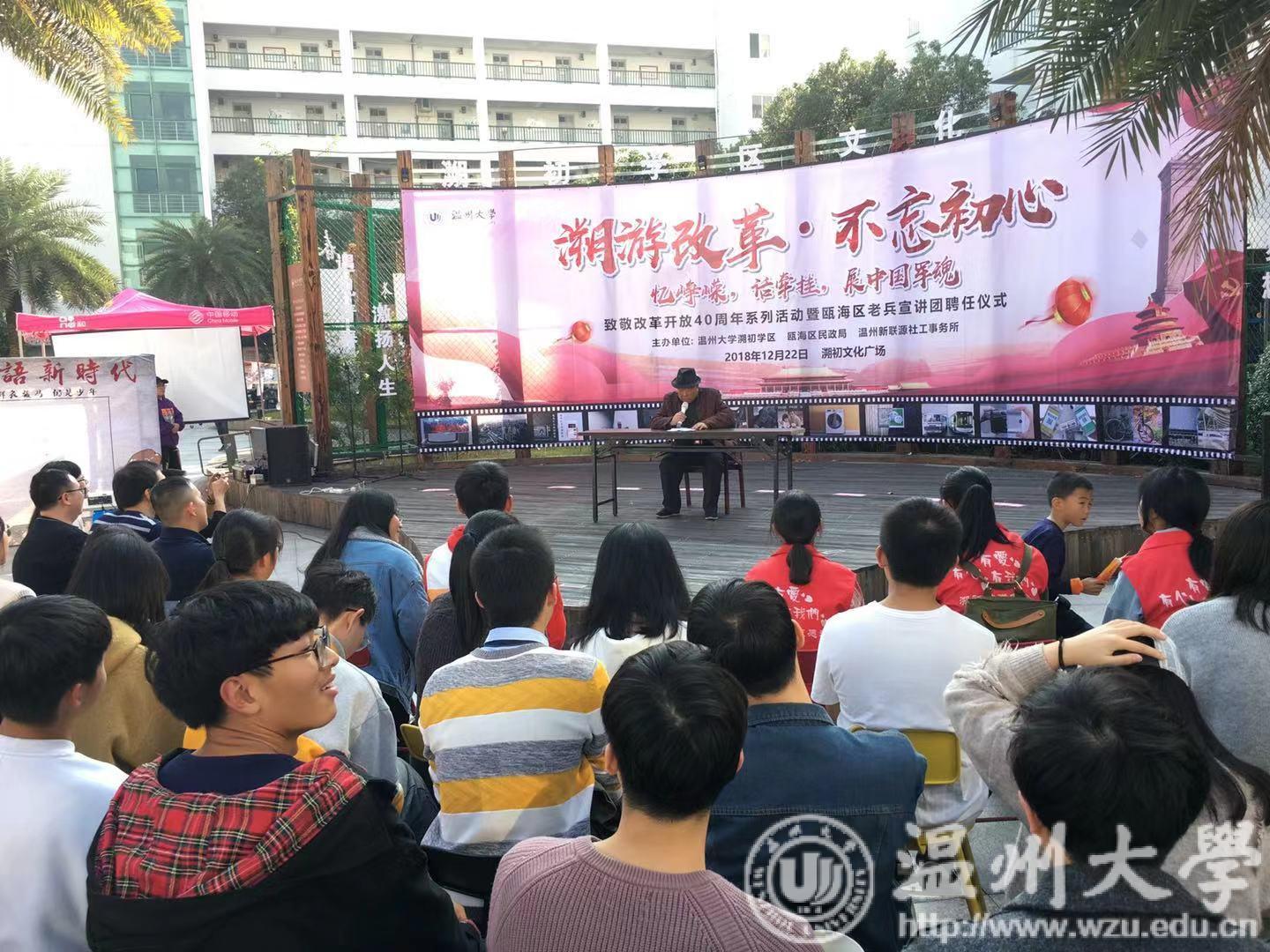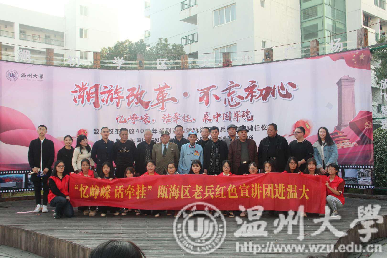12月22日,sunbet申愽官网溯初学区内迎来了一批“特殊”的客人,他们就是来自温州瓯海区的10位平均年龄超过65周岁退伍老兵。今天起,他们多了一个新身份——正式成为瓯海区退伍老兵红色宣讲团的一员。
