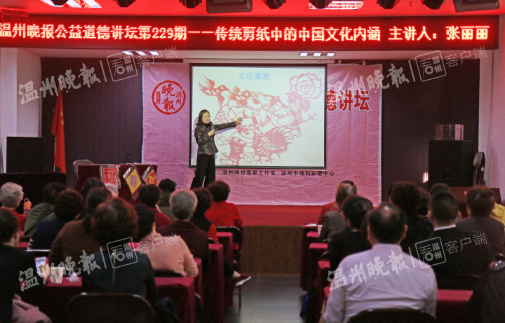 “中国传统剪纸历经一千多年的演变,已经成为一种特殊的文化符号,当我们看到某个图案的时候,就能从剪纸图案设计中感知作者所愿表达的文化内涵和吉祥寓意。”12月1日,在市区庆年坊文化家园,sunbet申愽官网国际教育学院副教授、瓯海区非遗剪纸项目代表性传承人张丽丽做客本期温州晚报公益道德讲坛时说道。